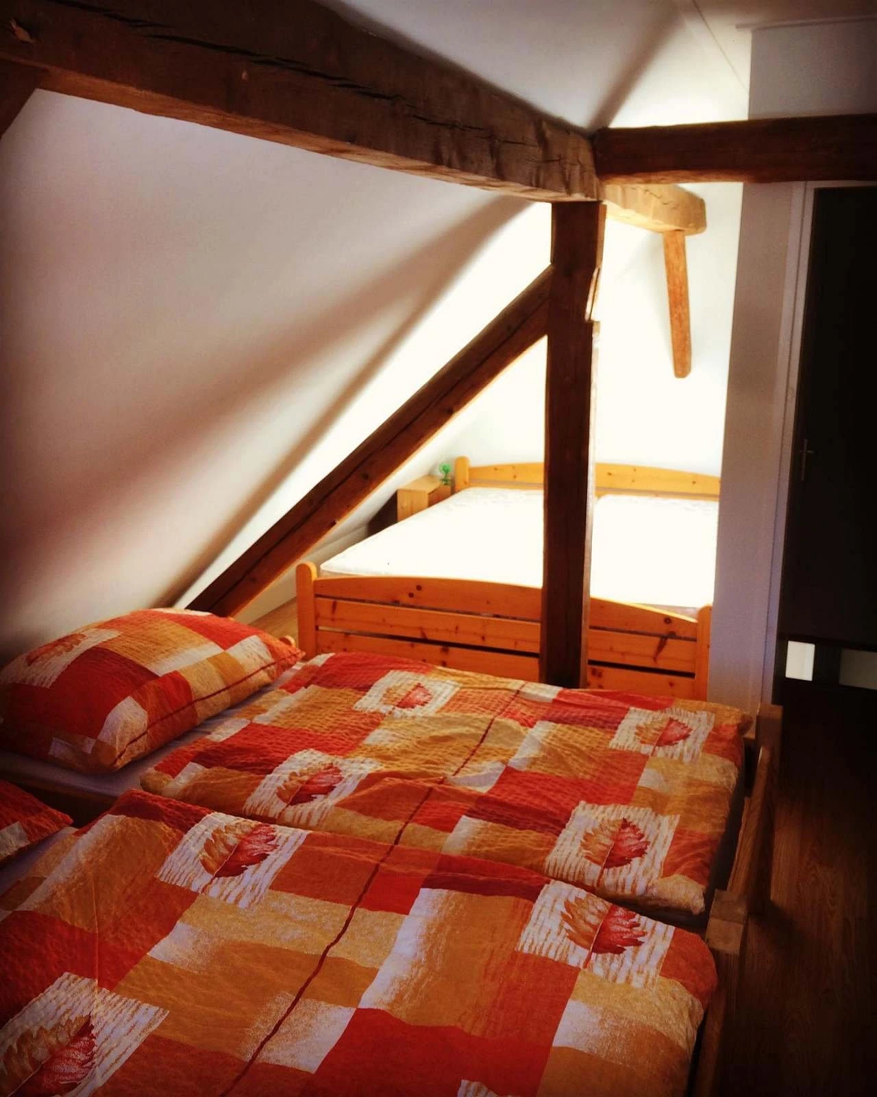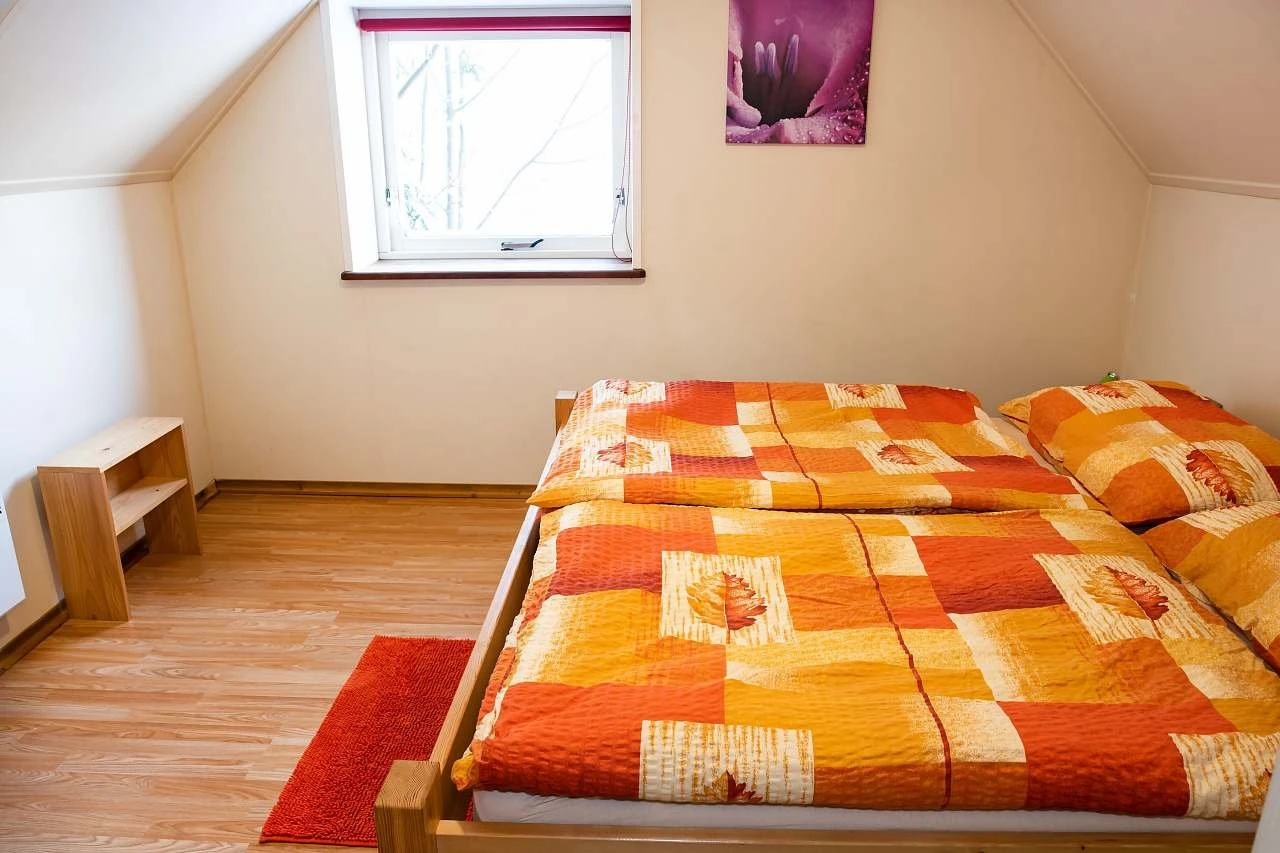 Objekt disponuje čtyřmi podkrovními ložnicemi. Dvě ložnice jsou vybaveny manželskými postelemi, jedna ložnice má tři samostatná lůžka a další ložnice nabízí manželskou postel a dvě samostatná lůžka. Celková dispozice umožňuje pohodlné ubytování větších skupin.