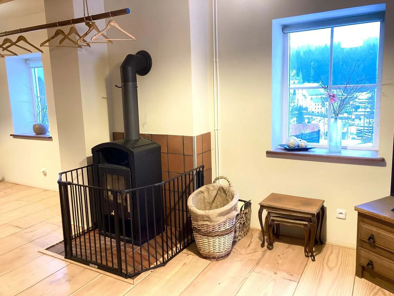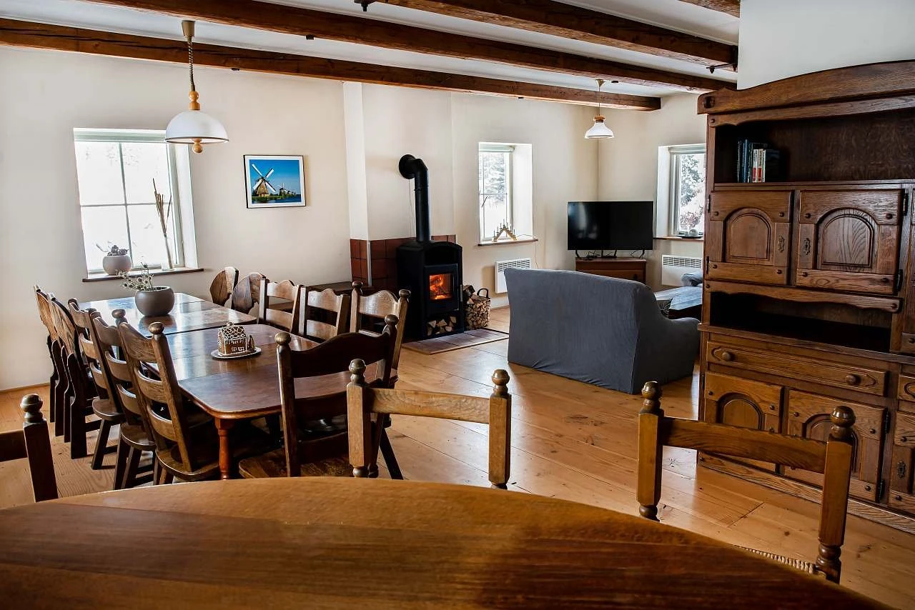 Vytápění je zajištěno ústředním topením s radiátory a podlahovým vytápěním. Krbová kamna ve společenské místnosti slouží jako doplňkový zdroj tepla, dřevo je k dispozici zdarma po dobu pobytu.