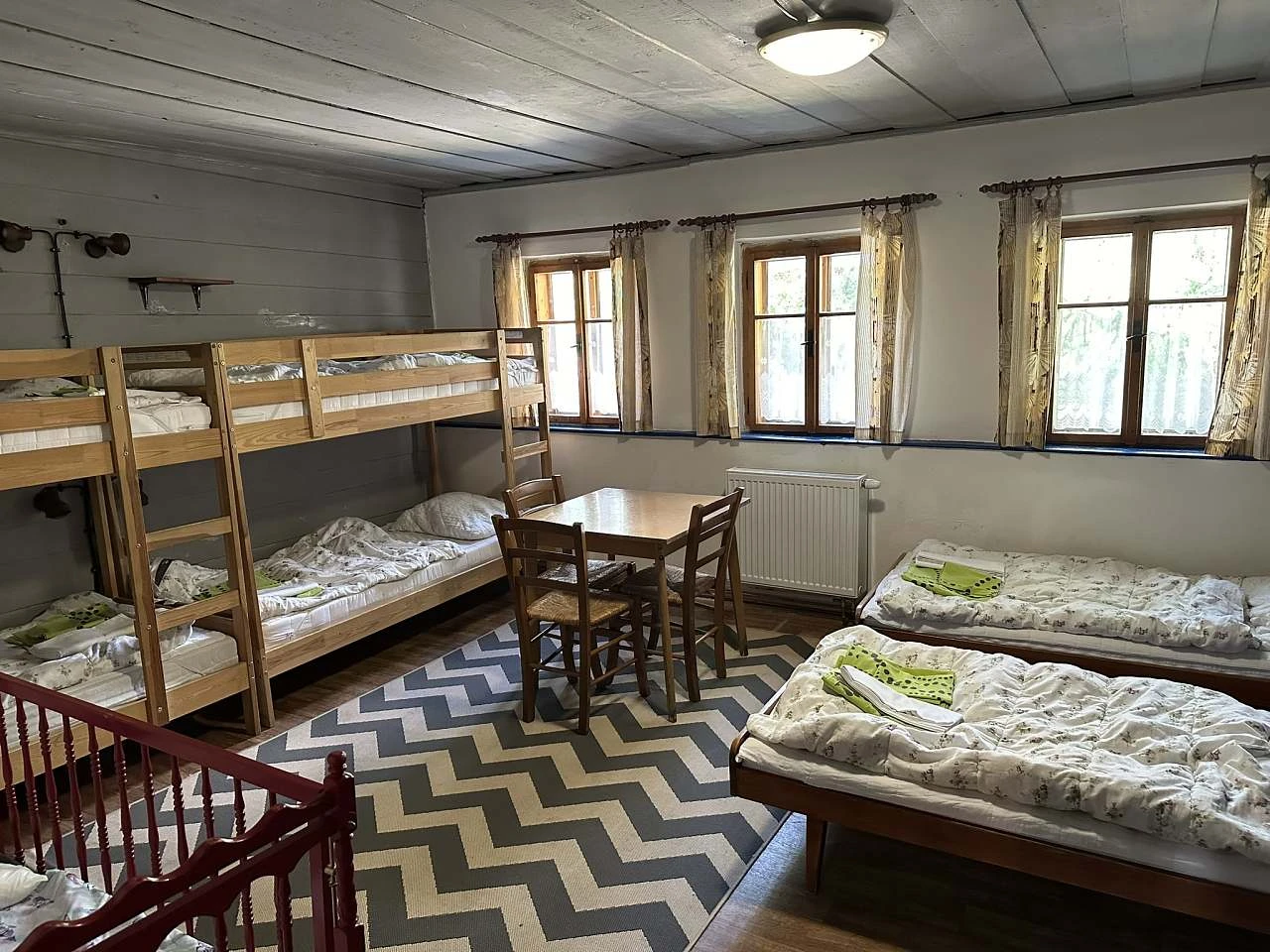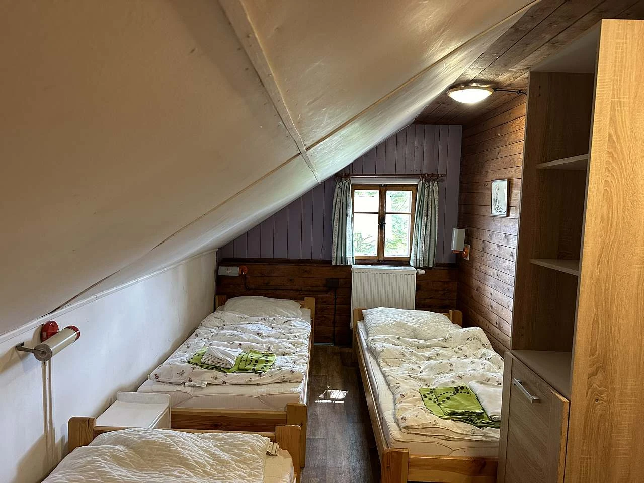 Roubená chalupa Horní chalupa, pronajímaná vždy jako celek, se nachází v obci Horní Polubný v Jizerských horách. Ubytování poskytuje kapacitu pro 30 osob ve 9 ložnicích. K dispozici je šest koupelen se sprchovým koutem a WC, společenská místnost s krbem a jídelním koutem, plně vybavená kuchyň, sauna s odpočívárnou a venkovní posezení. Objekt je nekuřácký, domácí mazlíček je povolen a v celé chalupě je k dispozici Wi-Fi.