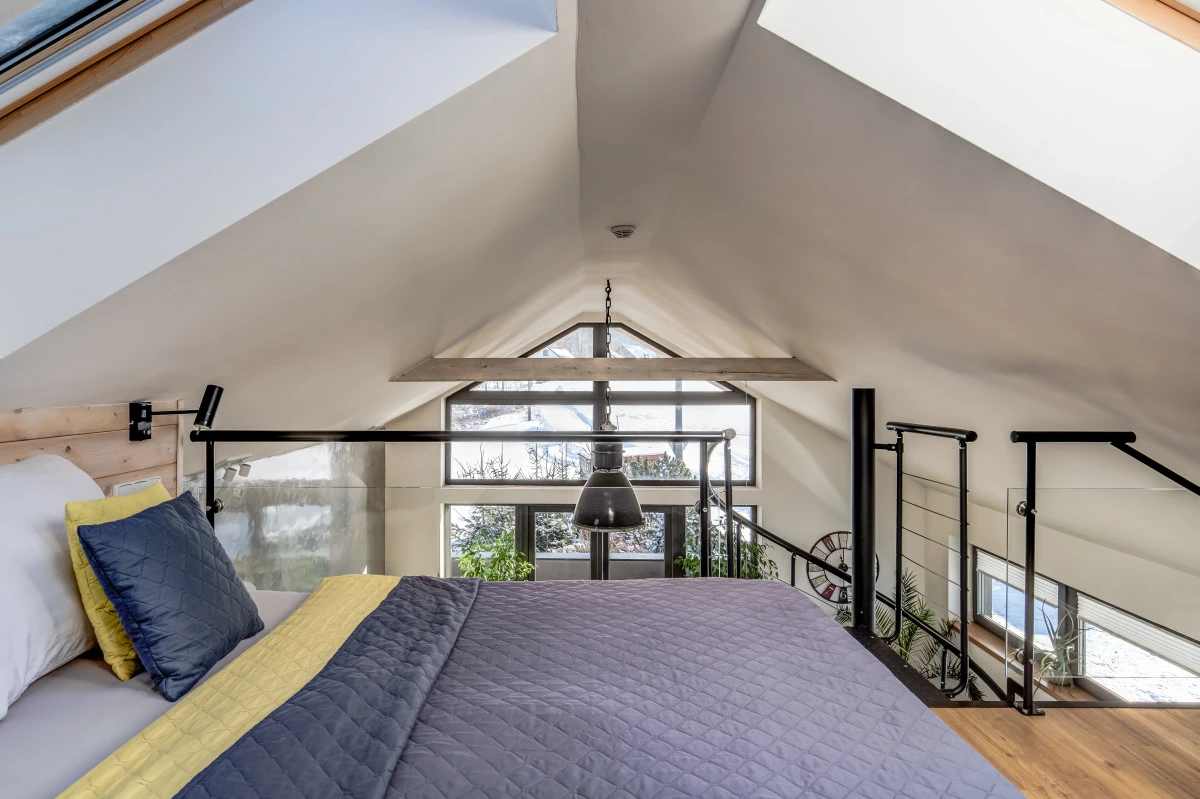 Apartmá má king size manželskou postel a trojlůžko v mezonetu, vybavené chytrou televizí, trezorem, minibarem, setem na kávu a čaj, kuchyňkou a jídelním koutem. Koupelna má vanu, sprchový kout, fén a toaletní potřeby. Terasa je vybavena vířivkou.