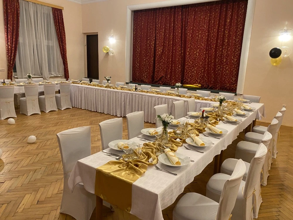 - Pronájem konferenčního sálu je vhodný pro oslavy a firemní akce.