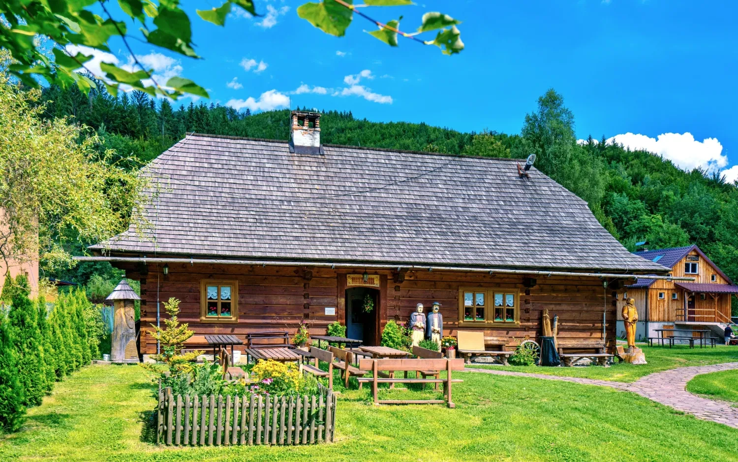 Tradiční dřevěné stavby, nádherná hřebenovka směrem k Radegastu a Radhošti. - Ivančena / Lysá hora