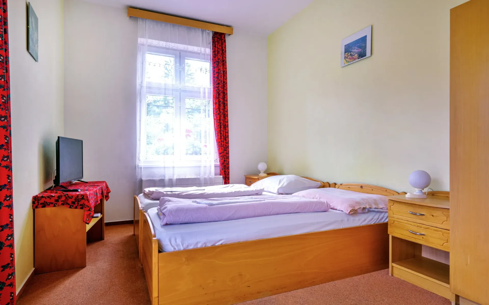 Pokoj je vybaven základními funkcemi pro pohodlný pobyt dvou hostů.