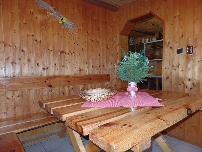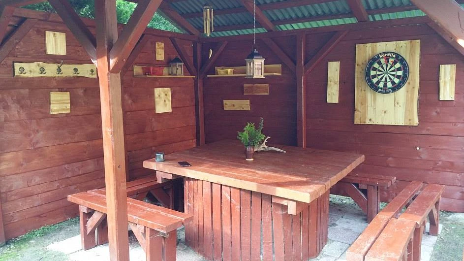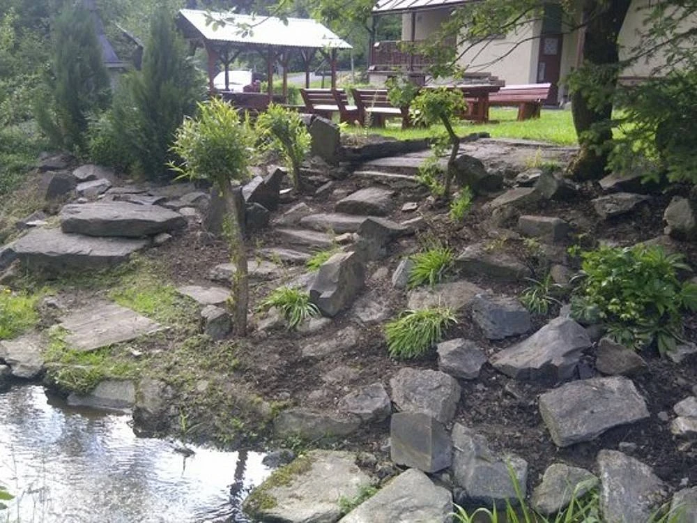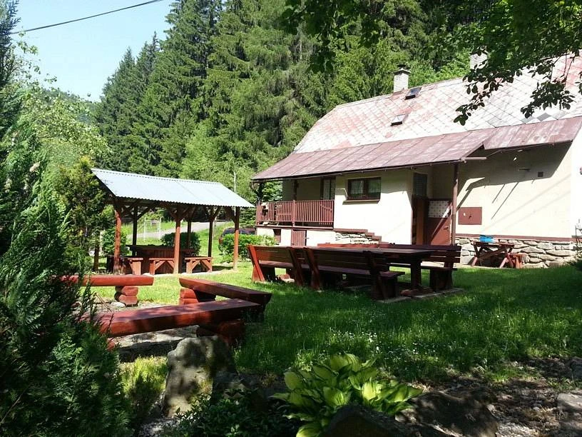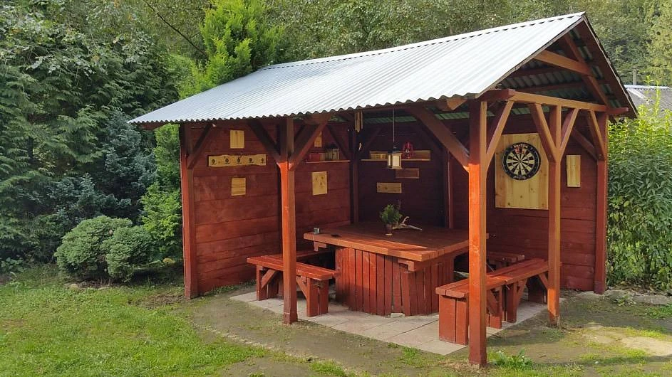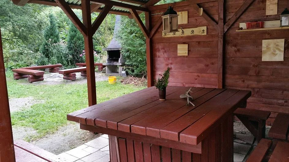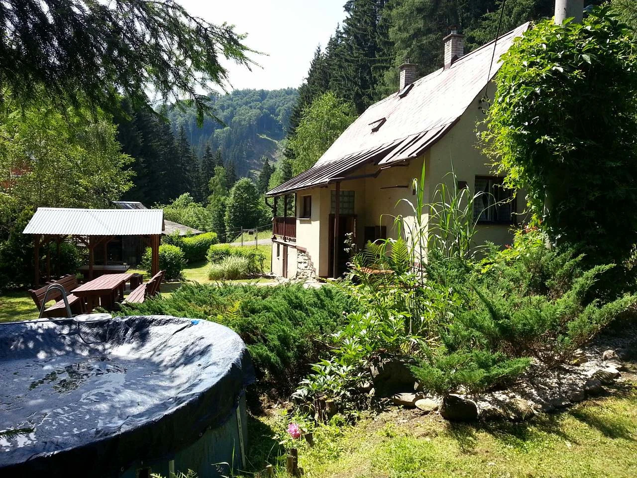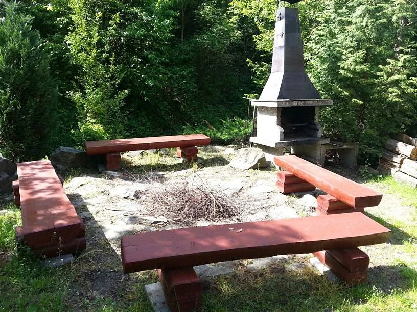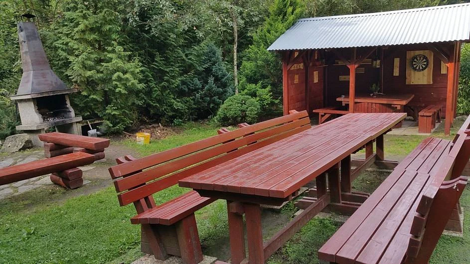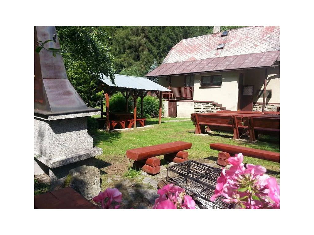 Na zahradě se nachází bazén o průměru 3,5 metru, ohniště s posezením, zahradní krb, gril a udírna. K dispozici je také kryté posezení, které vám umožní trávit čas venku i v případě nepříznivého počasí. Na zahradě je také zahradní nábytek, který vám poskytne pohodlné posezení. Kromě toho se na pozemku nachází horský potok, který je domovem pro rybičky.