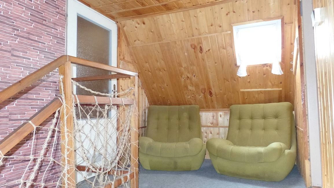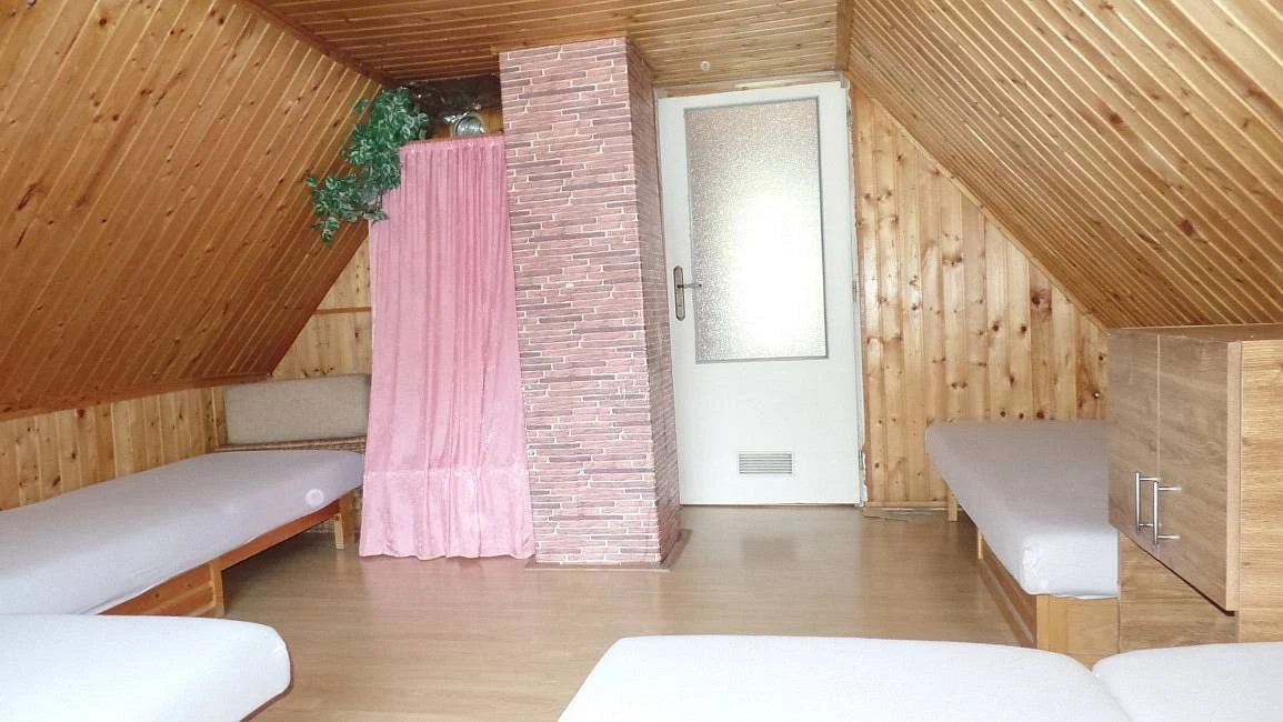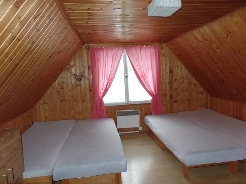 V prvním patře chalupy se nacházejí 2 ložnice, každá s kapacitou 6 lůžek. Na chodbě se také nacházejí 2 relaxační křesla. V přízemí v obývacím pokoji je možné pohodlně ubytovat dalších 3 osob, a jsou také k dispozici 2 přistýlky.