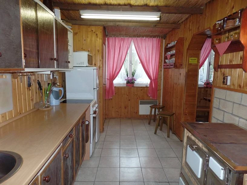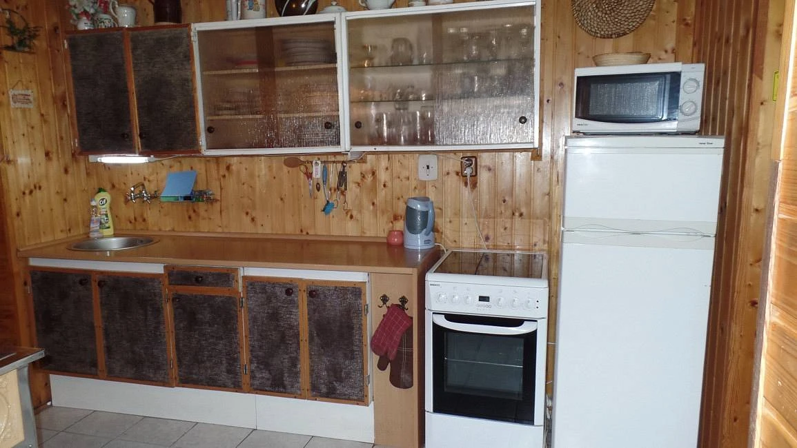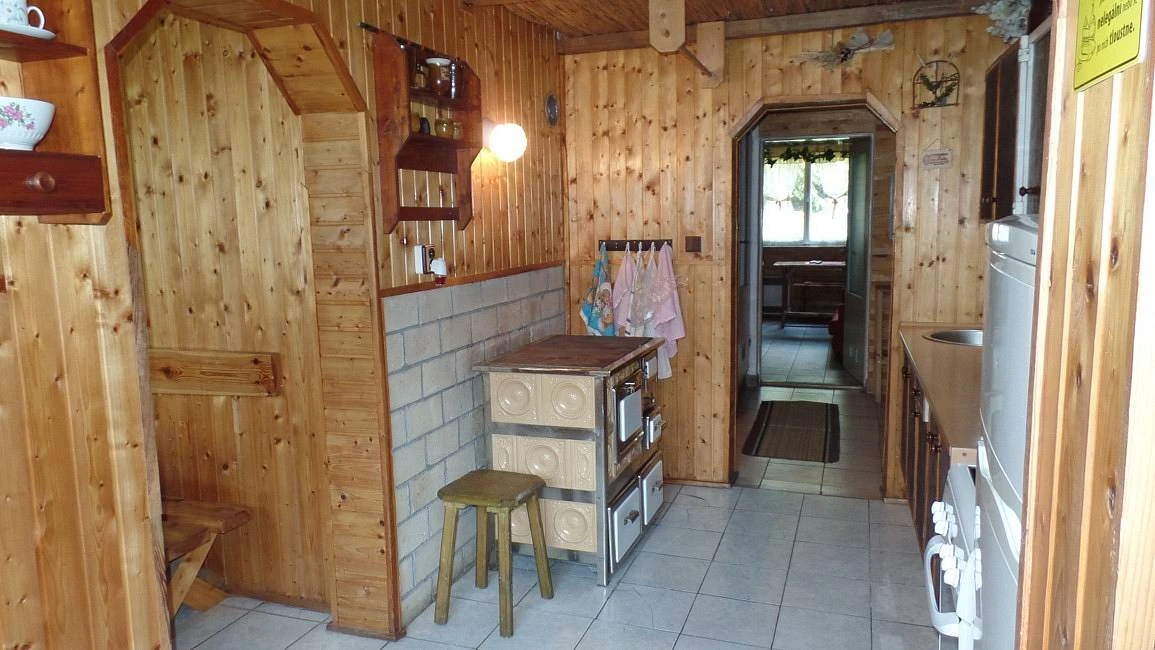 Chalupa je plně vybavená a poskytuje veškeré potřebné vybavení pro pohodlný pobyt. V kuchyni se nacházejí kachlová kamna na tuhá paliva, elektrický sporák s keramickou deskou a programovatelnou troubou, lednička, mikrovlnná trouba, topinkovač, varná konvice a veškeré nádobí potřebné pro vaření a stravování. Přímo vedle kuchyně je jídelna, a přes chodbu se dostanete do obývacího pokoje s krbem, třemi sedačkami, dvěma stoly a krásným výhledem do zahrady. V přízemí se také nachází krytá osvětlená venkovní terasa, která poskytuje možnost grilování i v případě deště.