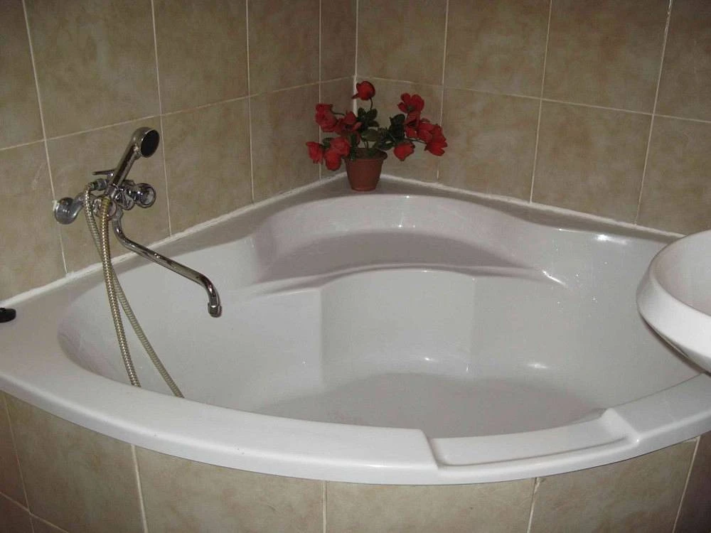 V přízemí se nachází koupelna vybavená velkou rohovou vanou, umyvadlem a WC. Teplá voda je nepřetržitě k dispozici jak v koupelně, tak v kuchyni.
