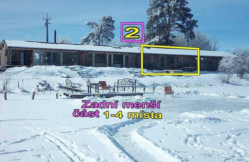 | 2. Zadní část + pokoj | 1–7 osob | cena dle dohody (výhodnější než přední část) |