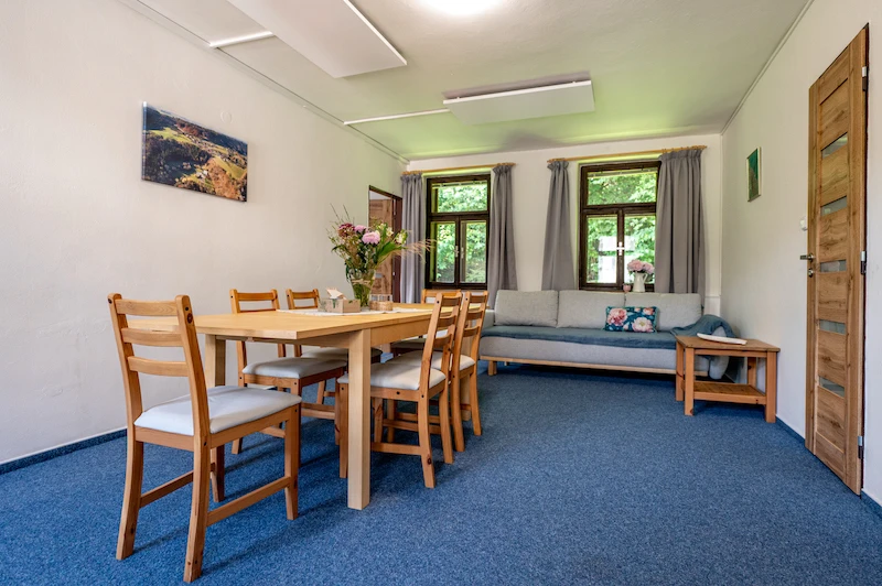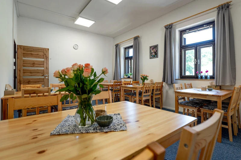 | Ubytování na pokoji | 550 Kč osoba/noc | 71 lůžek v 17 pokojích, 2 apartmánech a 3 pokojích s vlastní koupelnou |