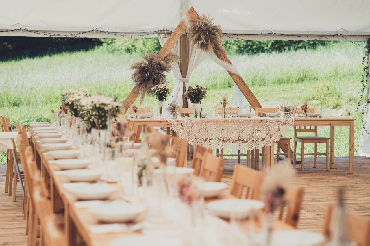 - Venkovní párty stan (240 m²) se dřevěnou podlahou