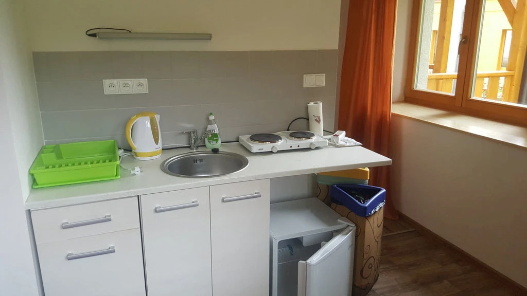- Kuchyňské kouty ve studiích a apartmánech s: