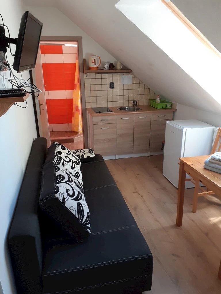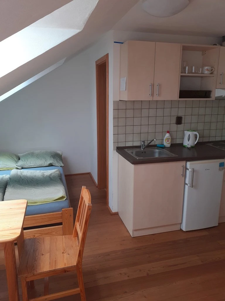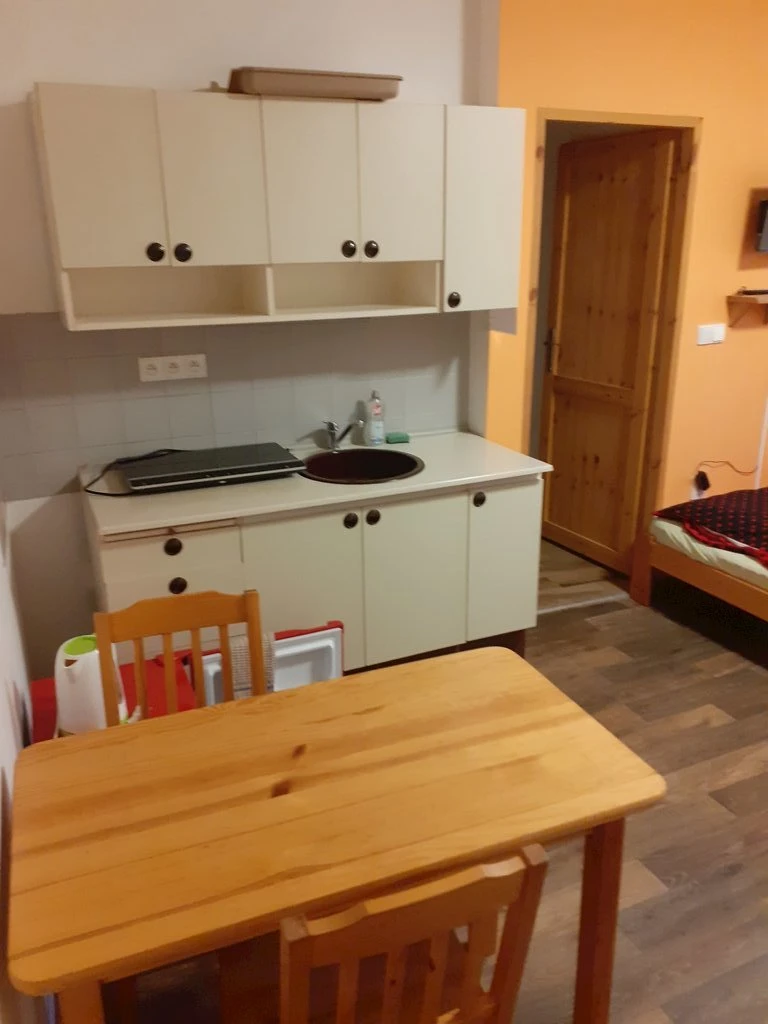 - Studia s kuchyňským koutem a vlastní koupelnou.