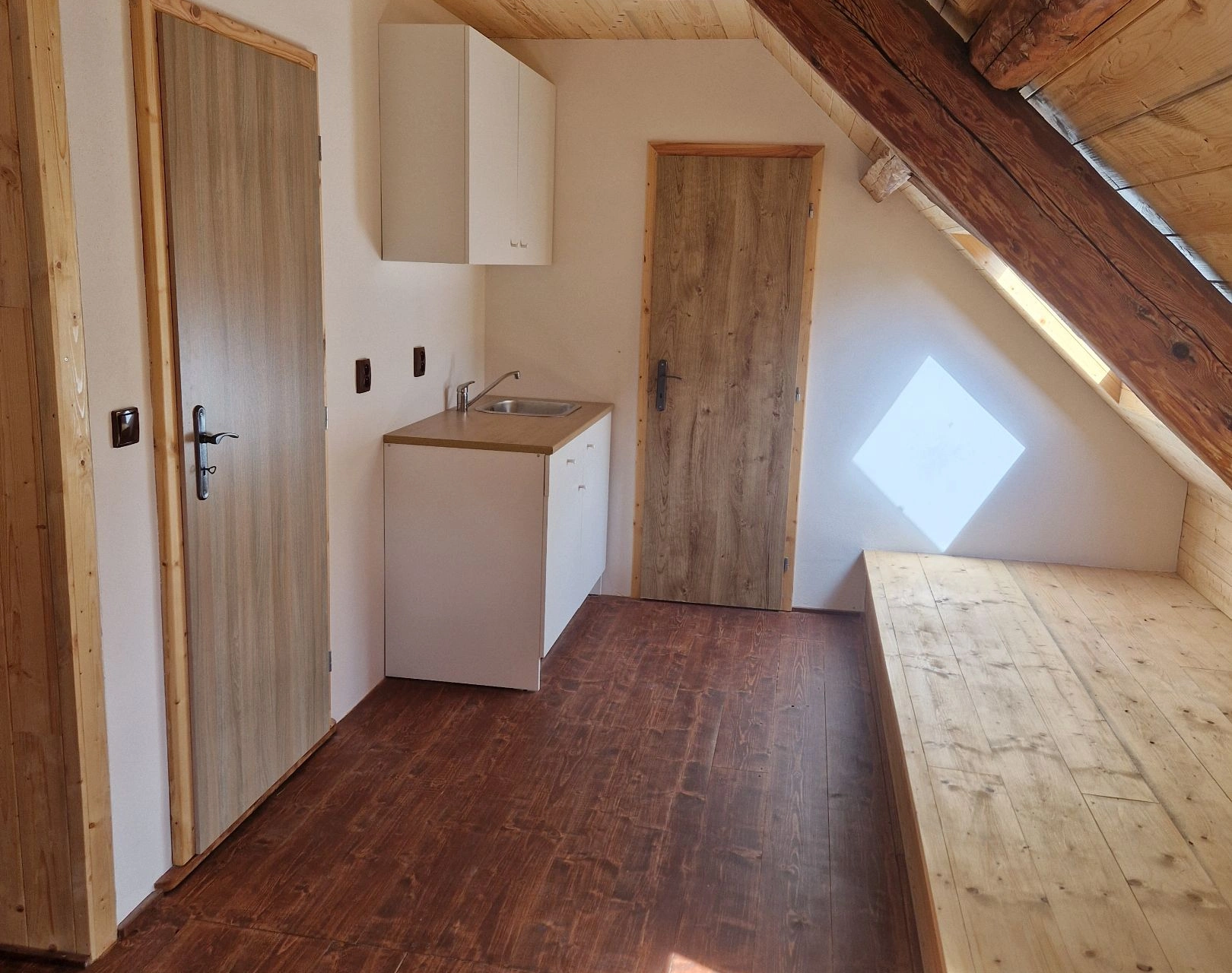 Chalupa 3 nabízí apartmány a studia s kuchyňským koutem, vlastní koupelnou a sociálním zařízením, včetně společenské místnosti pro keramické a řemeslné aktivity.