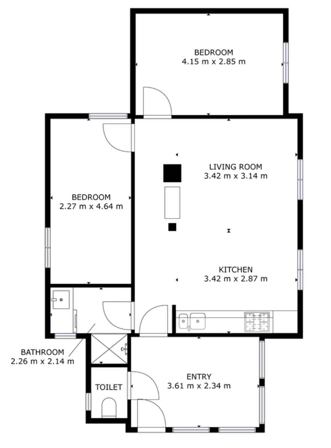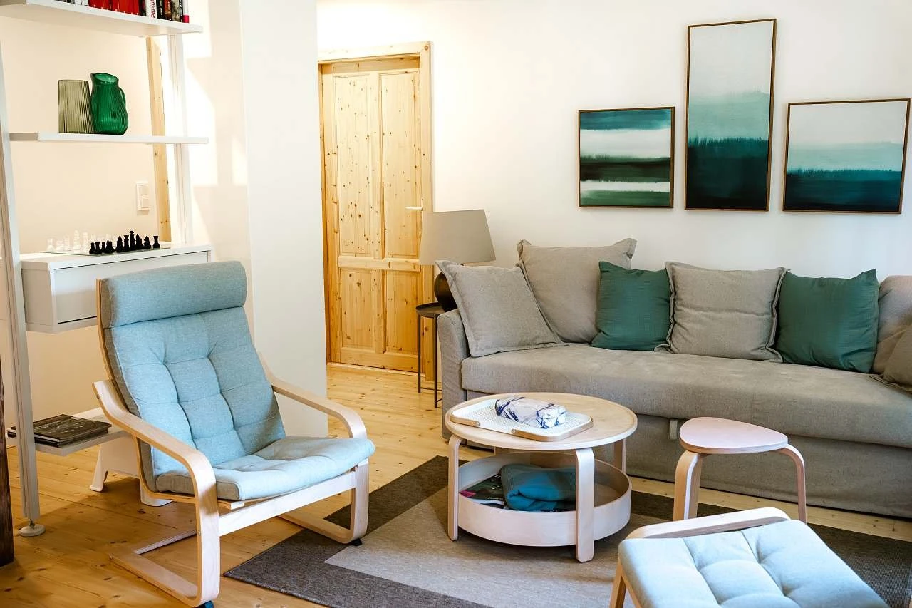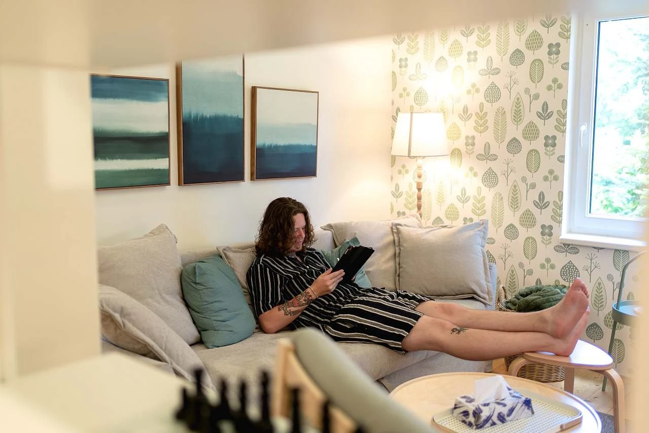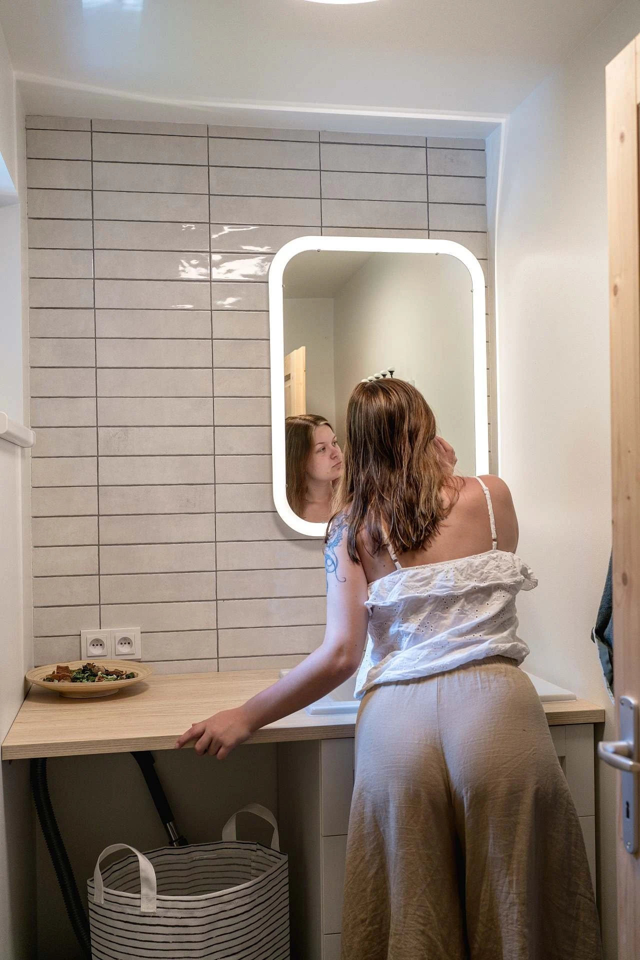 V každém objektu je samostatná koupelna vybavená sprchovým koutem, přičemž toaleta je umístěna zvlášť. O komfortní teplotu se stará podlahové vytápění.