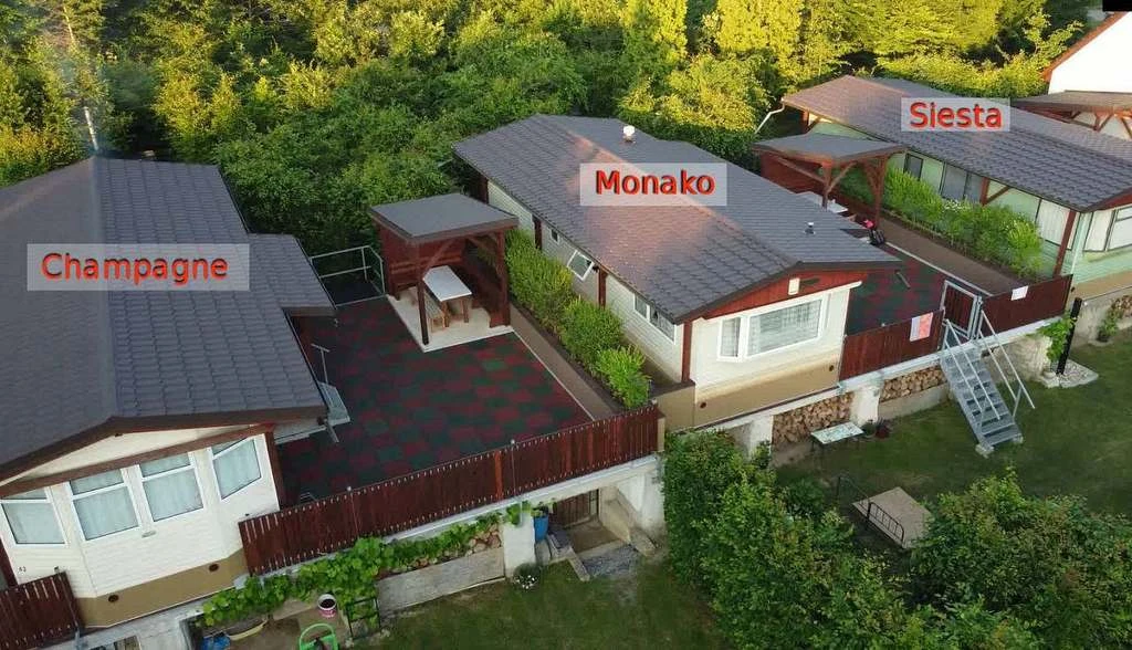 V objektu jsou k dispozici tři samostatně stojící chaty – Siesta, Monaco a Champan, které jsou v provozu v letních měsících. Celková kapacita ubytování je 15 osob. Každá chata má vlastní parkovací místo a samostatný vstup. Ubytování je vhodné pro rodiny s dětmi, páry i jednotlivce.