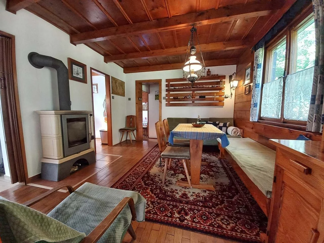 Objekt je nekuřácký a umožňuje pobyt s domácím mazlíčkem po domluvě. Součástí je společenská místnost s posezením a krbovými kamny, která slouží k vytápění a vytváří hlavní obytný prostor. K dispozici je také prosklená místnost (zimní zahrada / vnitřní terasa) vhodná pro odpočinek.