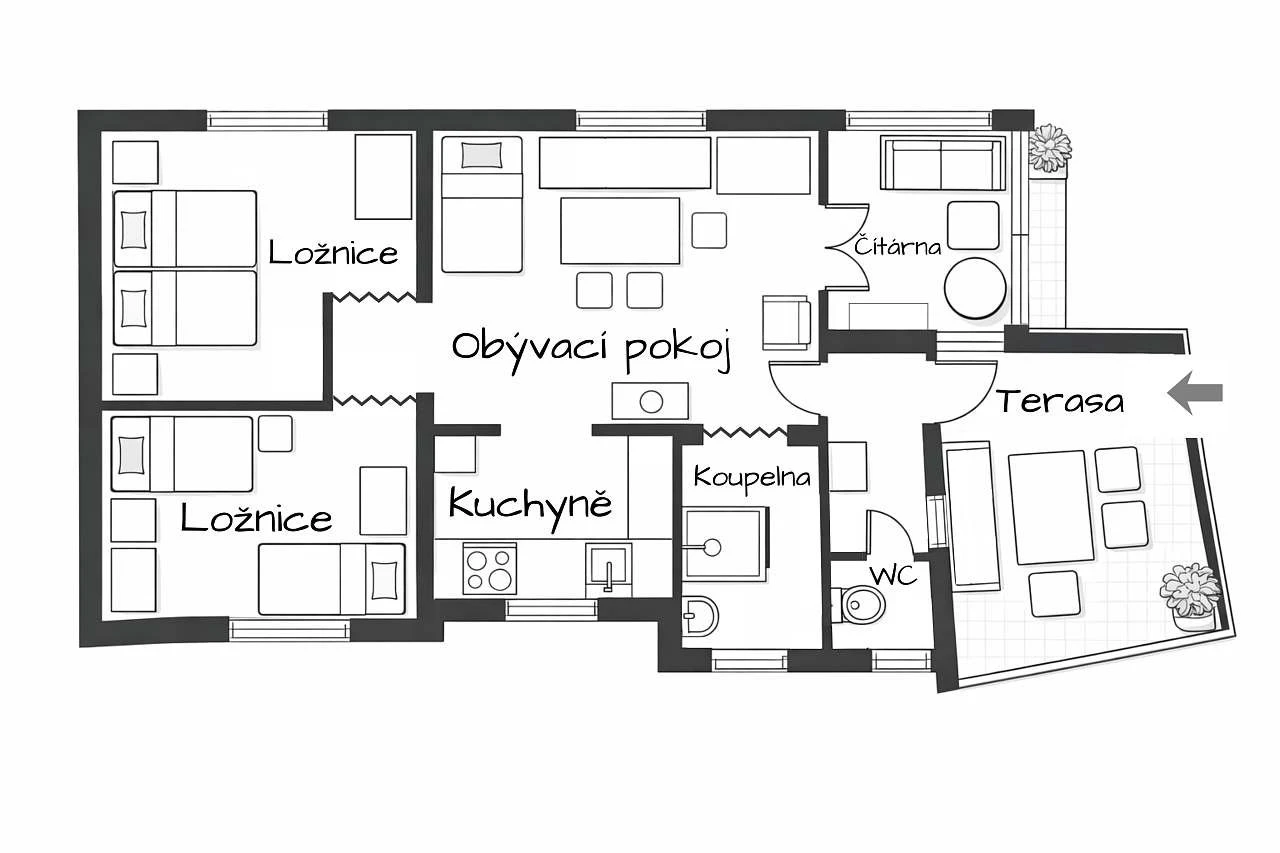 | Silvestr 2026 | ❌ obsazeno | běžně cca 3 000 Kč / noc (min. 4 noci) |