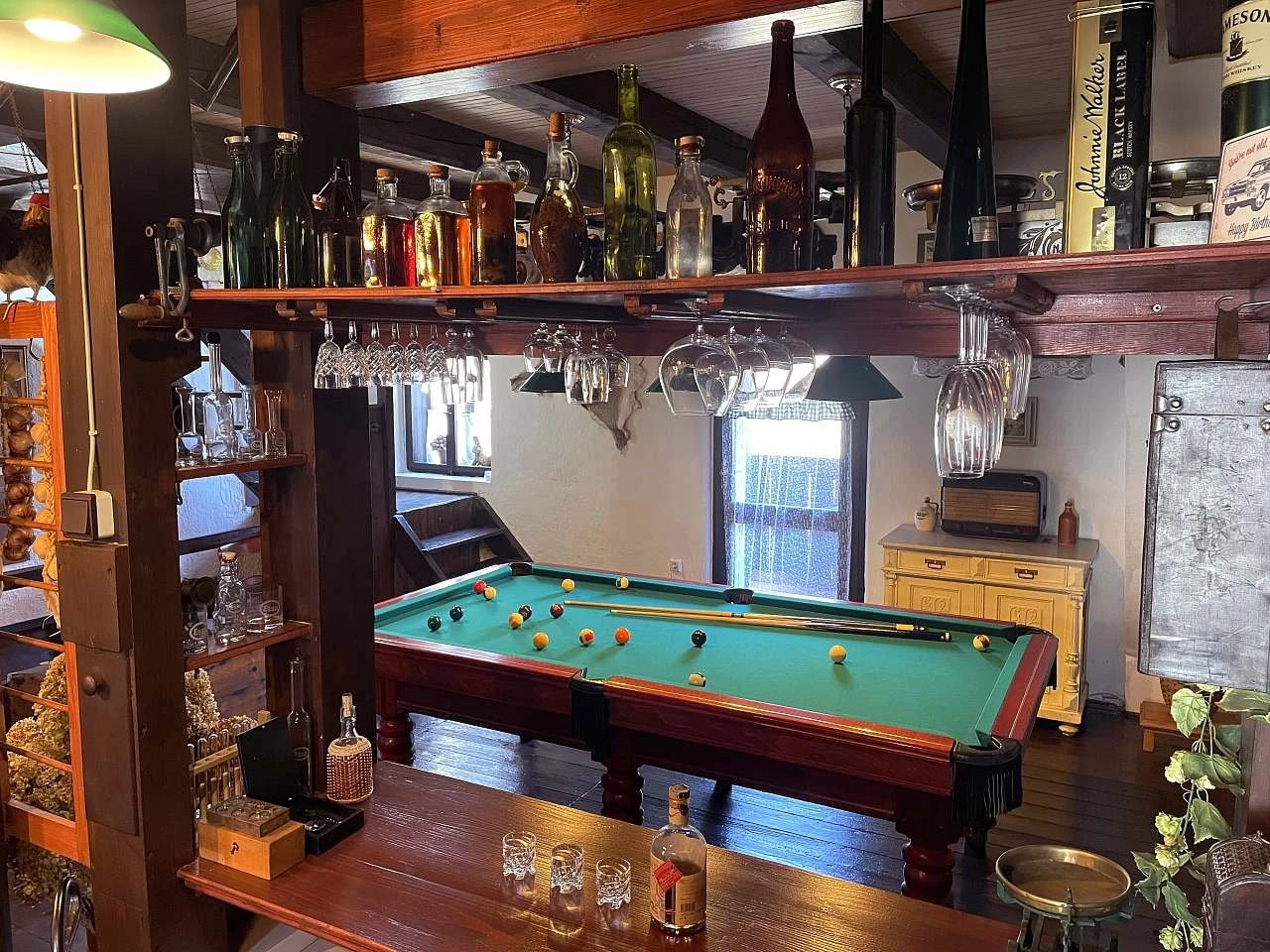 - Vyšší částka je stanovena s ohledem na historické vybavení, sbírkové předměty a kulečník