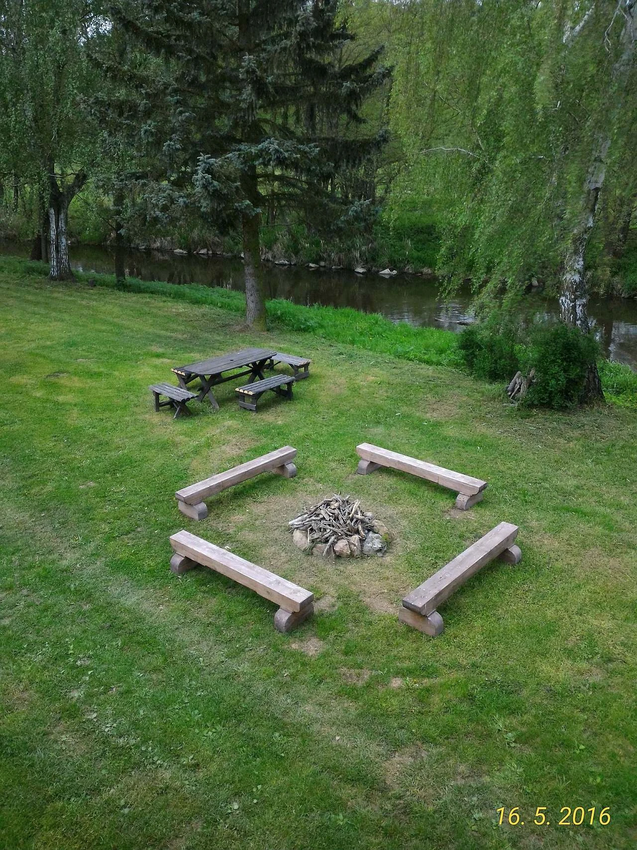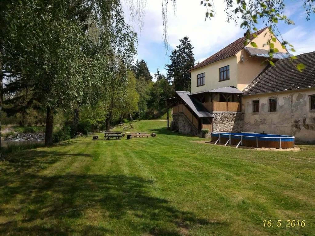 - Venkovní zázemí: Ohniště, plynový gril, zastřešená terasa s posezením.