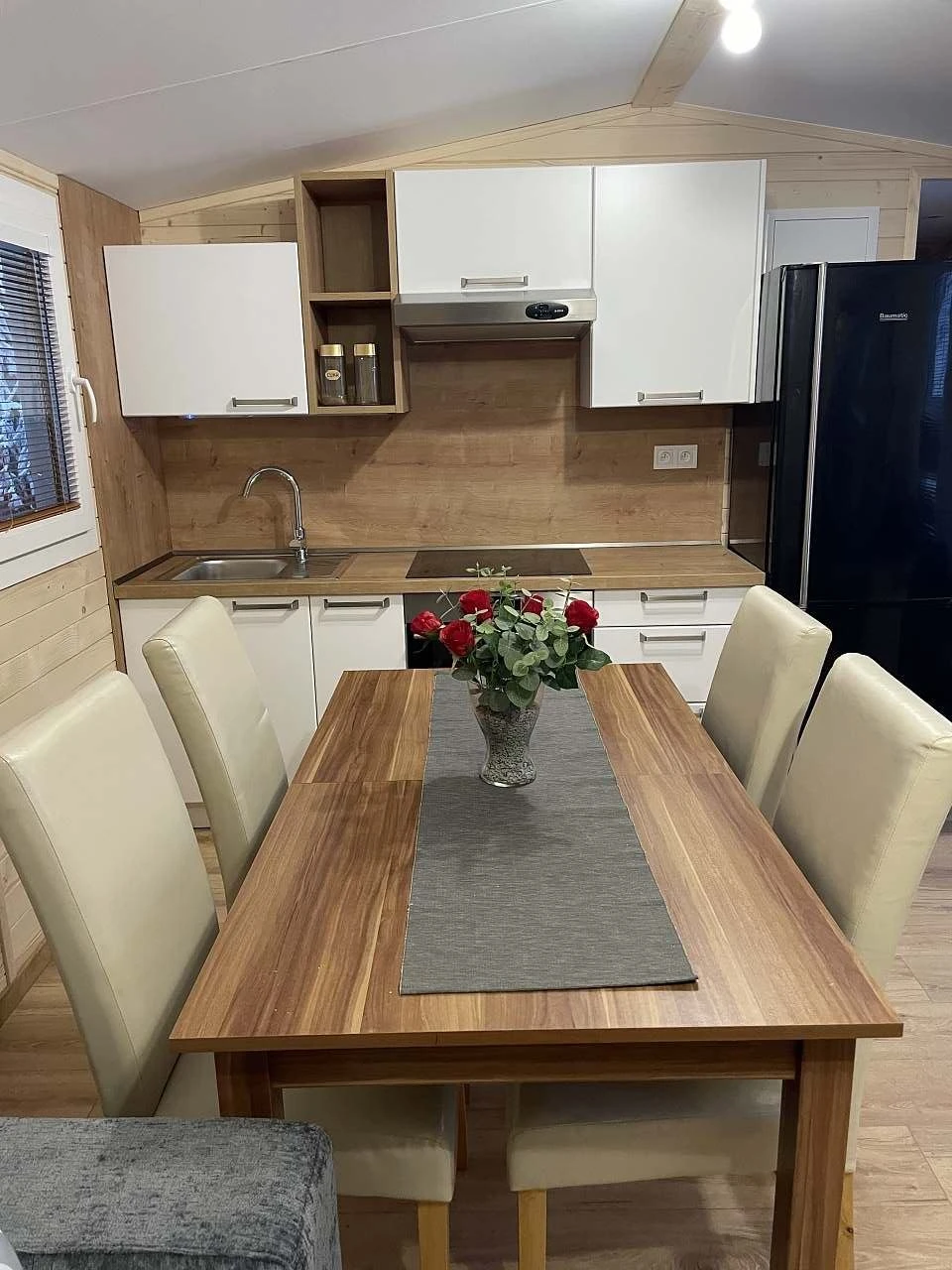Chata je kompletně vybavená a připravená k celoročnímu užívání. Součástí je kuchyňský kout s následujícím vybavením: