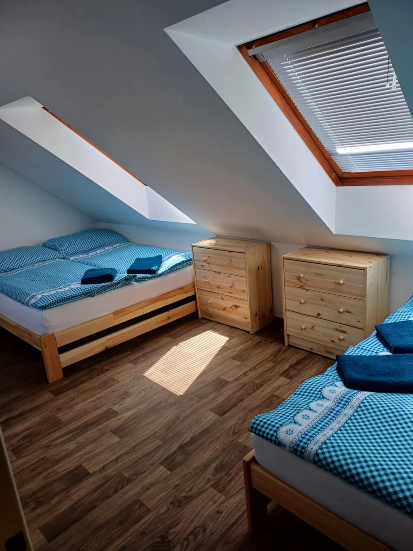 - podkrovní pokoj pro 6 osob (3 manželská lůžka)