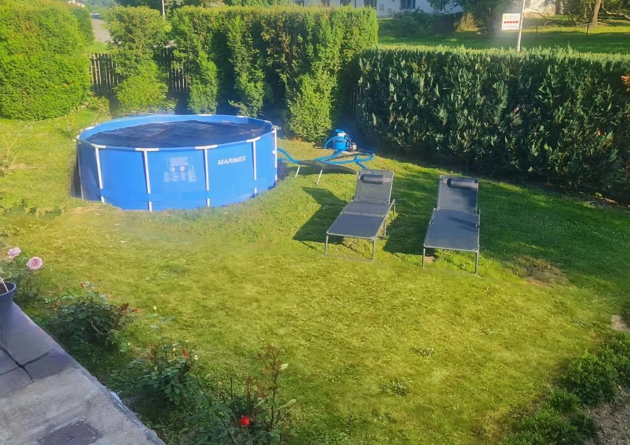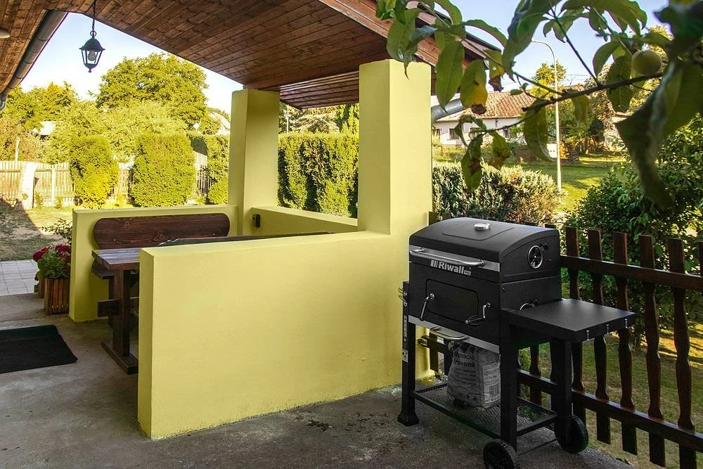 Venkovní část zahrnuje terasu, sezonní bazén a posezení. Objekt se pronajímá jako celek bez sdílení s dalšími hosty.