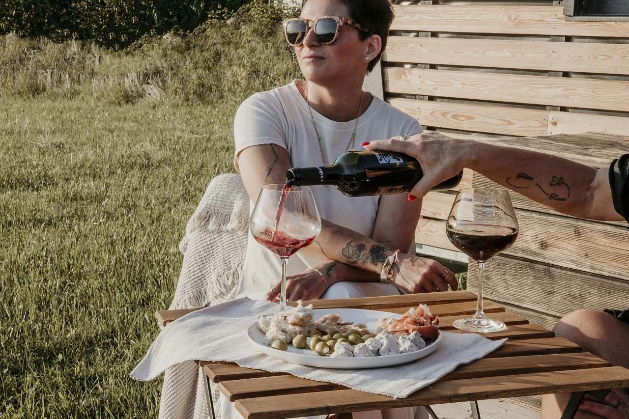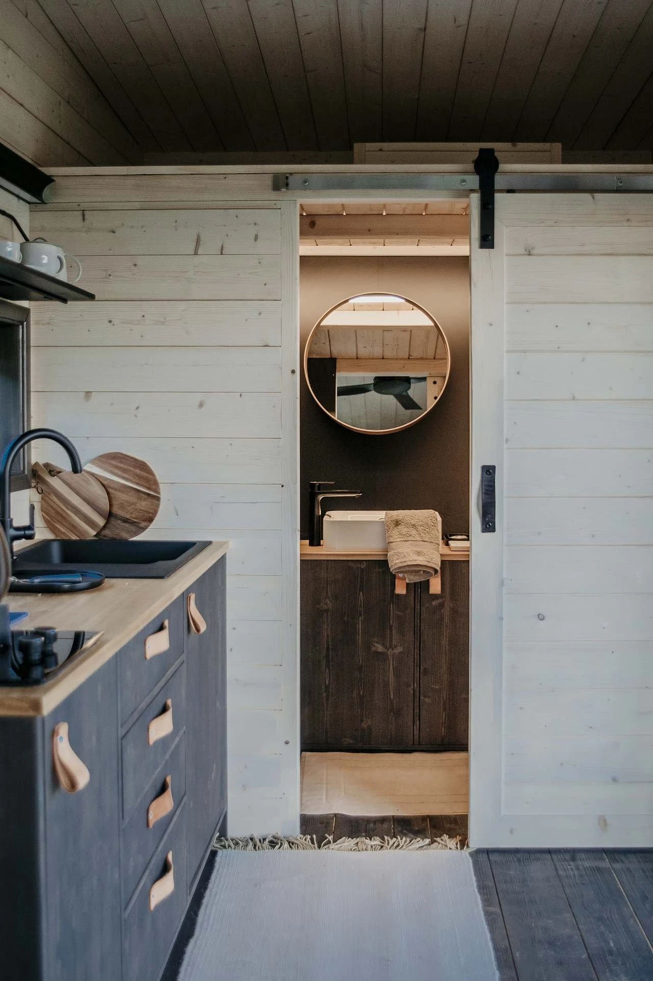 Interiér je prakticky řešený a umožňuje samostatné vaření. Součástí vybavení je vnitřní krb, který zvyšuje komfort pobytu v chladnějším období. Ubytování nabízí také venkovní terasu, využitelnou po většinu roku.