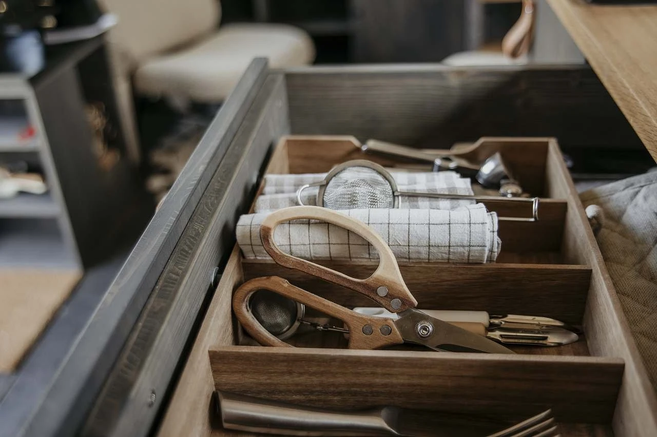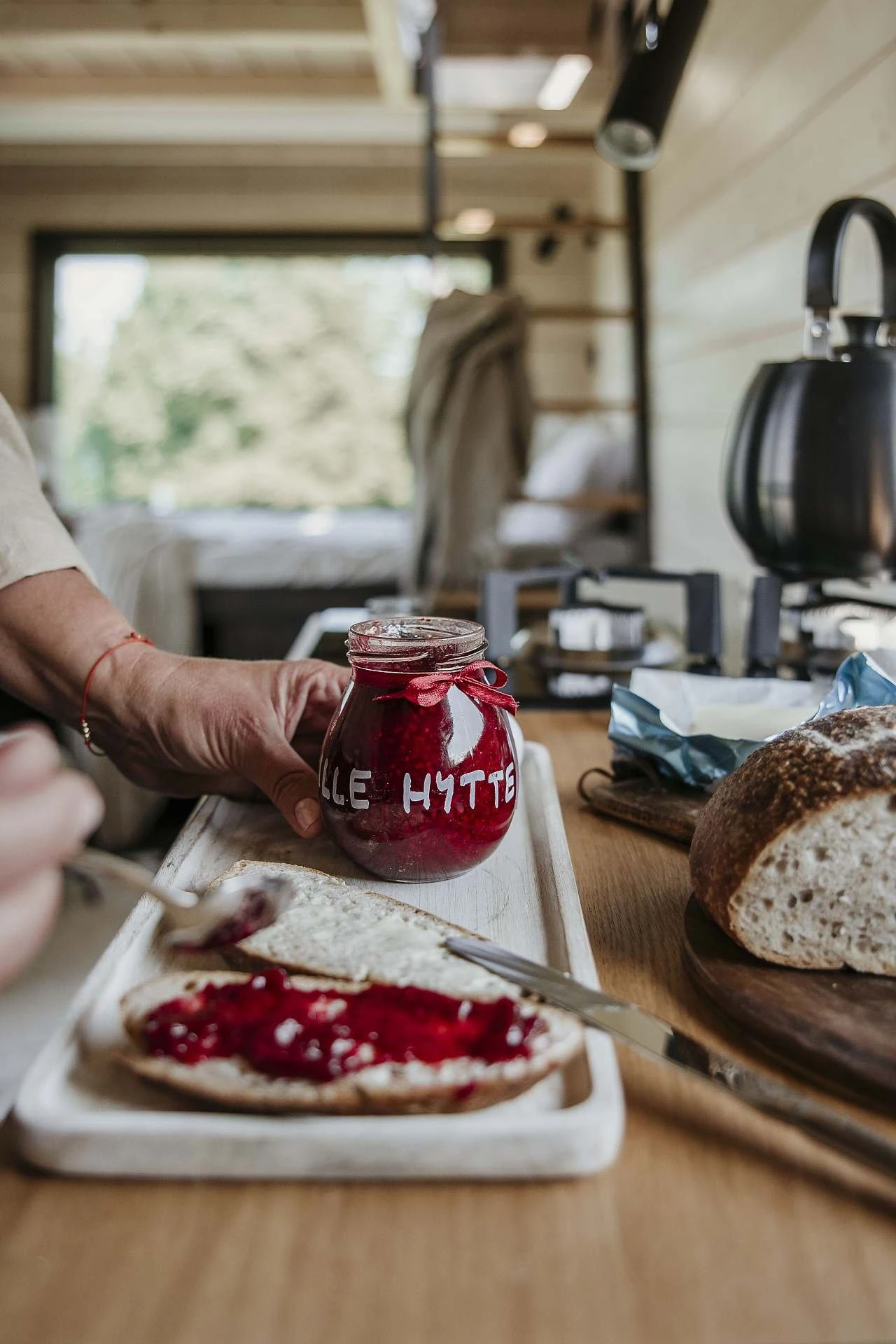 Kuchyně je vybavena pro jednoduché vaření. K dispozici je indukční varná deska se dvěma plotýnkami, hrnce, pánev, příbory, hrníčky, sklenice, kuchyňské nože a prkénka, vařečky, utěrky a prostírání, dále otvírák na víno a otvírák na konzervy.