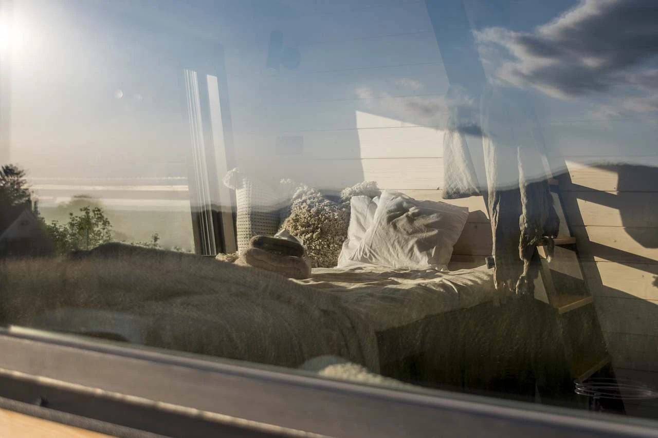 Ubytování nabízí jednu obytnou místnost. Spací část je umístěna nahoře pod stropem a je určena pro dvě osoby. Ve spodní části se nachází palanda, kterou lze využít k odpočinku nebo jako lůžko pro třetí osobu. K dispozici je lněné povlečení a prostěradla od českého výrobce. Pro zimní období jsou připraveny péřové přikrývky, rovněž od českého výrobce, v letních měsících lněné přikrývky.