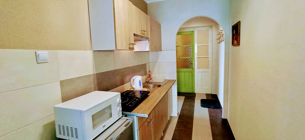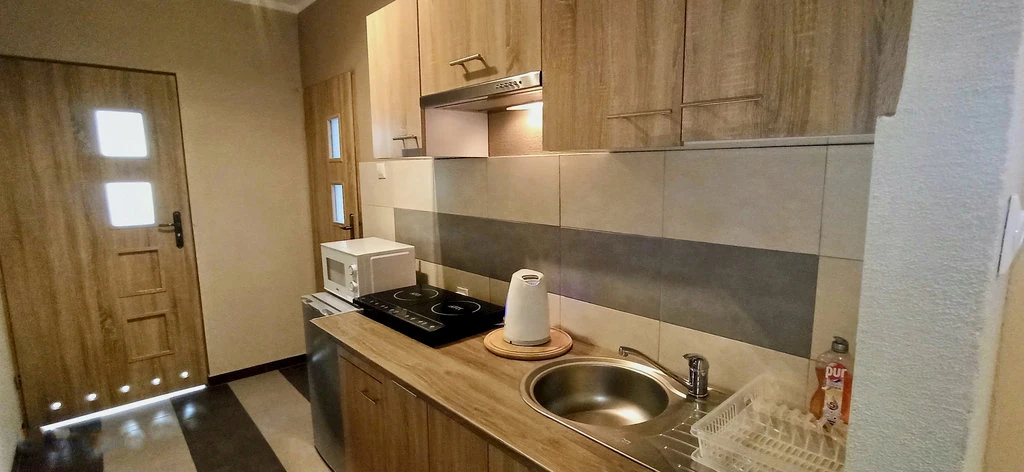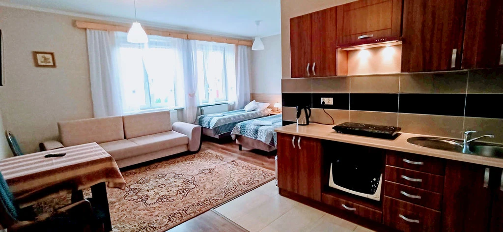 - Kuchyň: mikrovlnná trouba, rychlovarná konvice, lednička, jídelní sezení, elektrický vařič