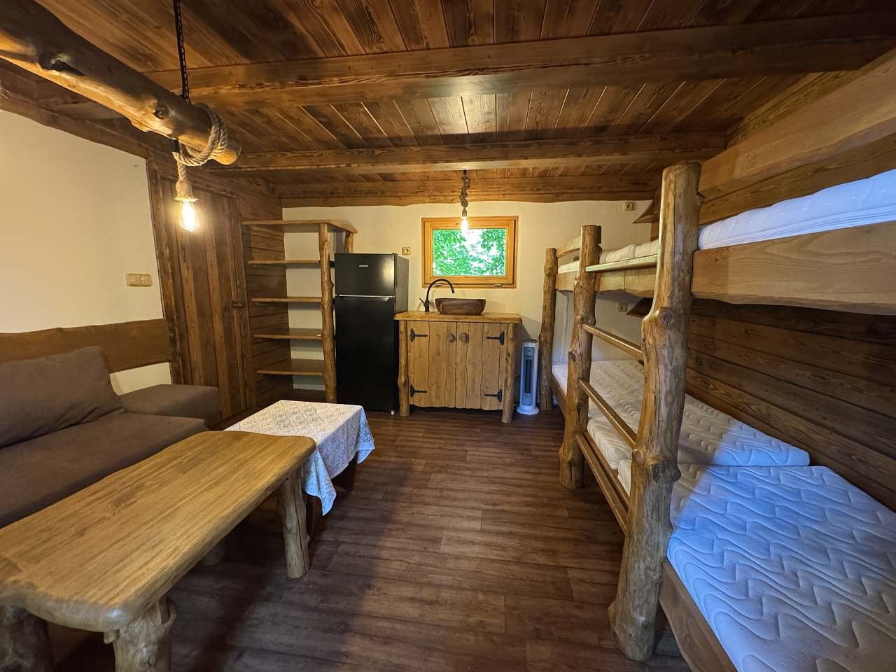 Kapacita: 4 lůžka + 2 přistýlkyPočet ložnic: 1 (samostatná ložnice)Typ objektu: samostatná chata, celoročníPlocha: 25 m²Vybavení:Wi-FiKoupelna se sprchou a WCKuchyňka (lednice, trouba, sporák, mikrovlnka, rychlovarná konvice)ObývákTerasa s posezenímKrbová kamnaPoloha: vrchol Skalný, nadmořská výška 709 m n. m., cca 5 km od kempu