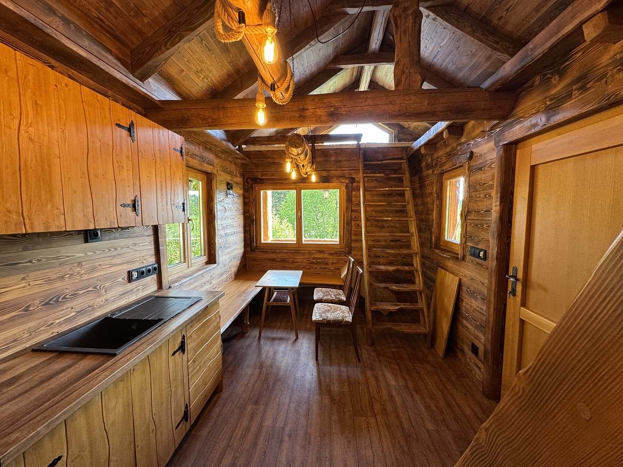 Kapacita: 4 lůžka + 2 přistýlky (4 lůžka v podkroví, 2 osoby na rozkládacím gauči)Počet ložnic: 1Typ objektu: samostatná chataPlocha: 25 m²Vybavení:Wi-FiKoupelna se sprchou a WCKuchyňka (lednice, trouba, sporák, mikrovlnka, rychlovarná konvice)ObývákTerasa s posezenímPoloha: nadmořská výška 735 m n. m.