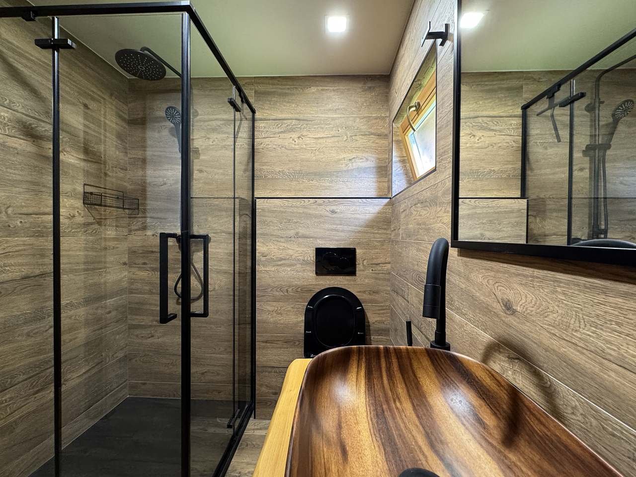 Všechny chatky mají zásuvky u postelí včetně USB, vnitřní i venkovní posezení a možnost parkování zdarma.