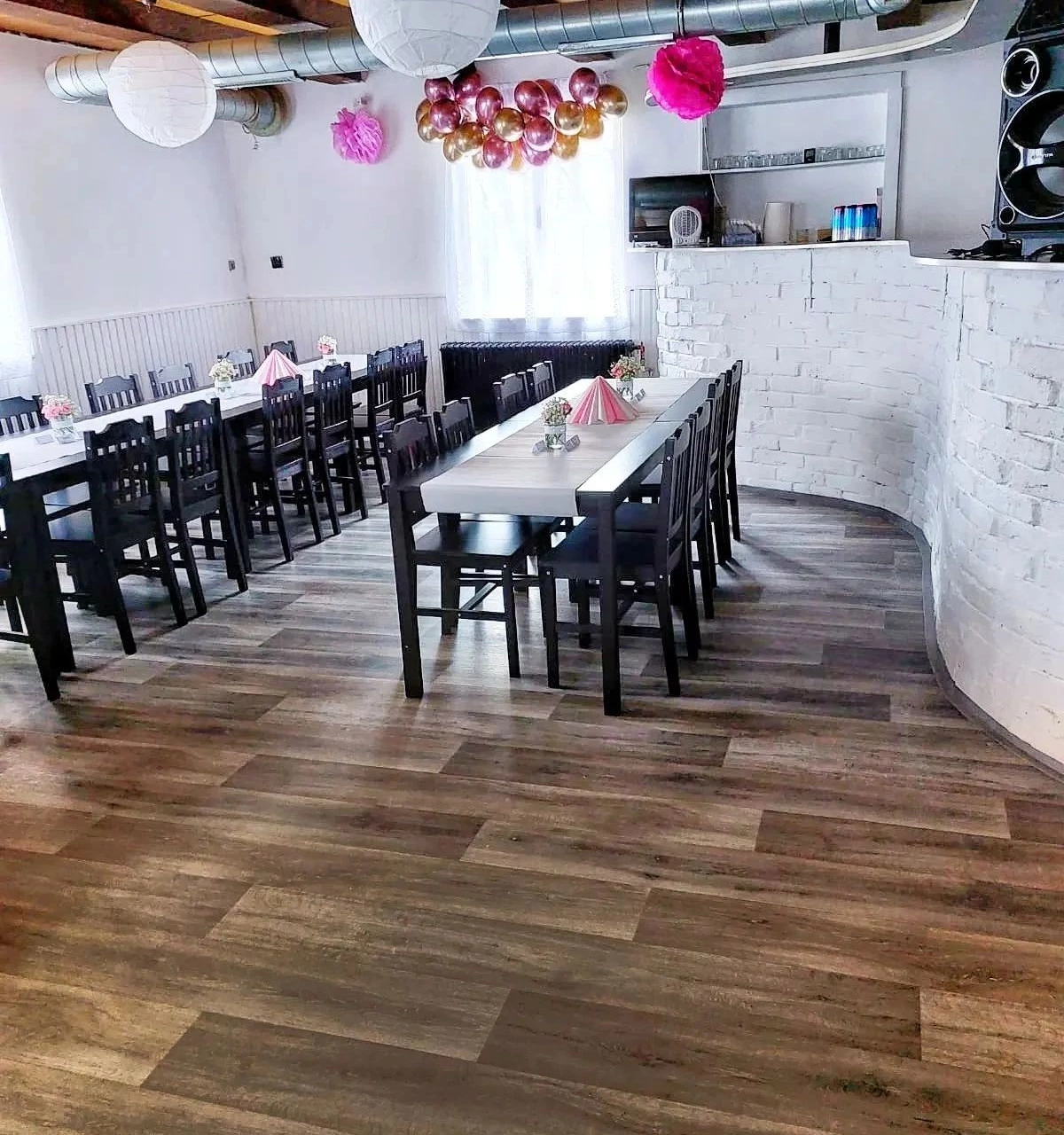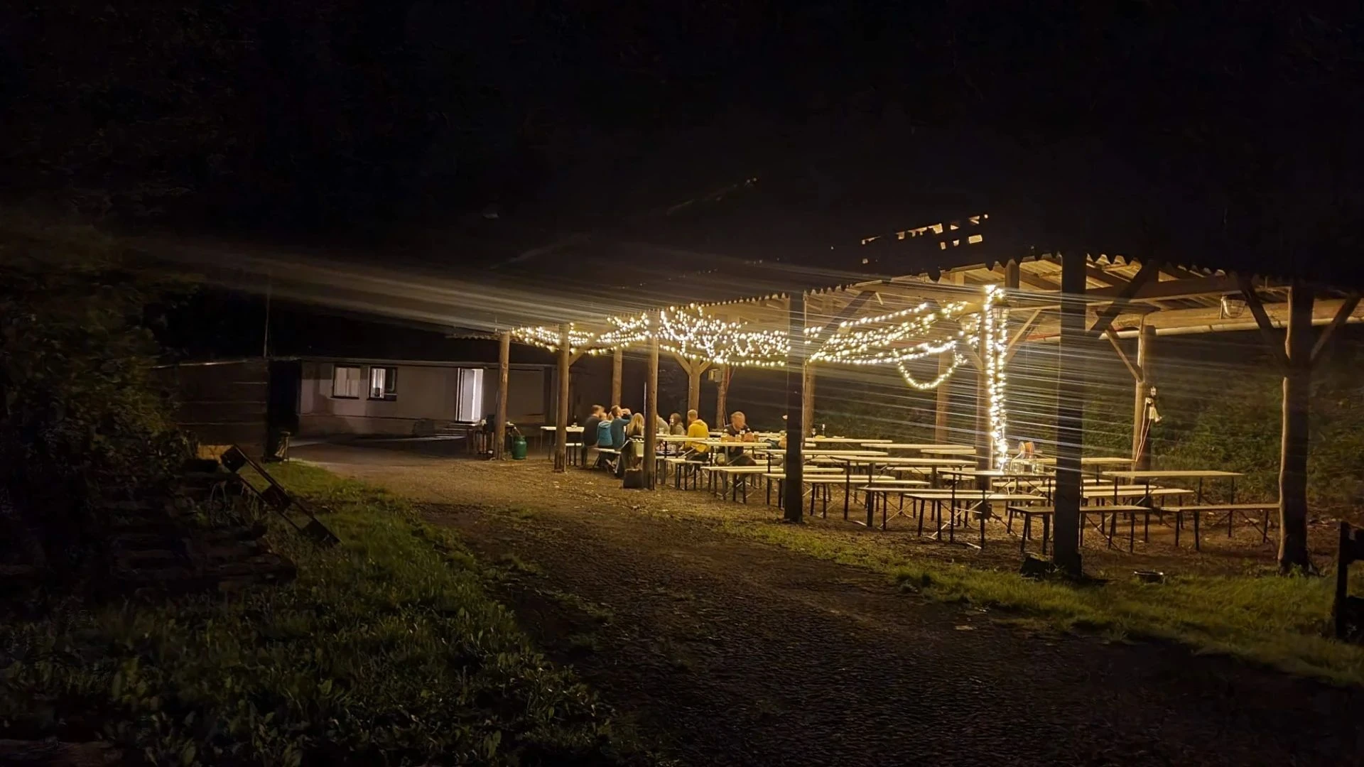 - Velkou krytou pergolu s posezením – 15 setů lavic a stolů, kapacita až 120 osob