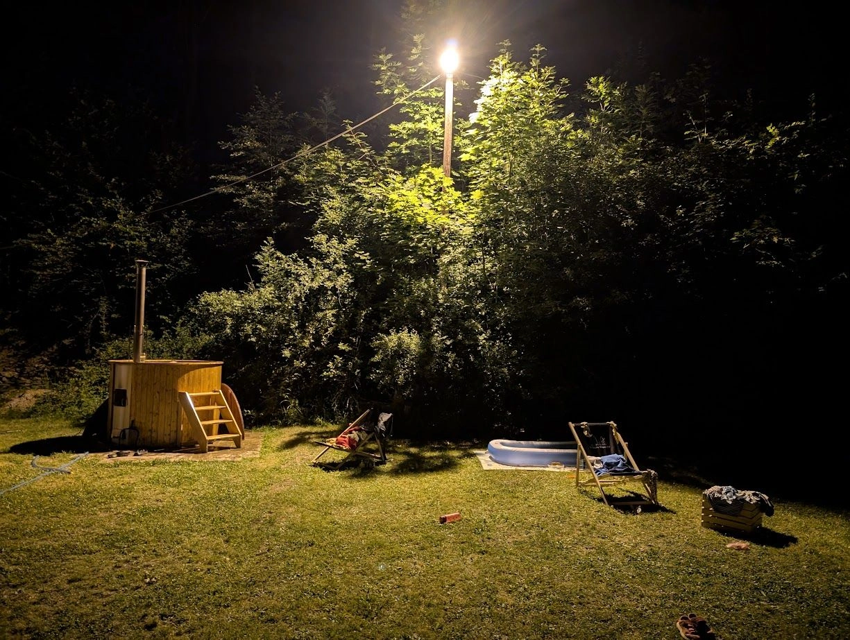 Areál se nachází v soukromí, bez pohledu sousedů. Po 22. hodině je nutné přesunout hlasitou hudbu do vnitřních prostor. Tichá hudba, kytara nebo konverzace jsou povoleny venku i po této hodině.