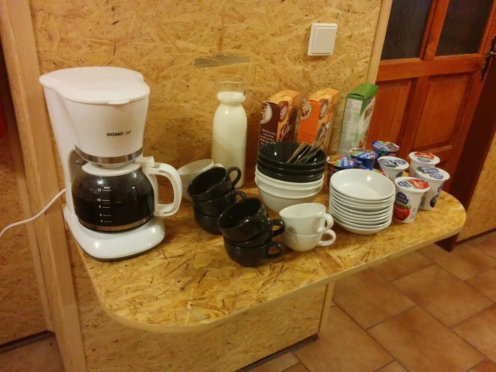 Každá ubytovací jednotka má vlastní koupelnu s toaletou. Studia a apartmány jsou vybaveny kuchyňským koutem určeným k přípravě jednoduchých jídel. Hosté ubytovaní v pokojích mohou využít společnou kuchyňku umístěnou na chodbě v suterénu. Objekt nabízí bezdrátové připojení k internetu (Wi-Fi). Součástí služeb je možnost objednání snídaně, která je podávána na pokoj, případně formou bufetu pro skupiny v salonku.