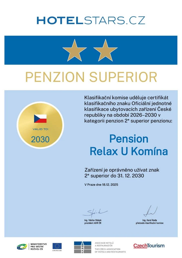 - Místní poplatek z pobytu: 50 Kč na osobu a den (není zahrnuto v ceně pokoje).