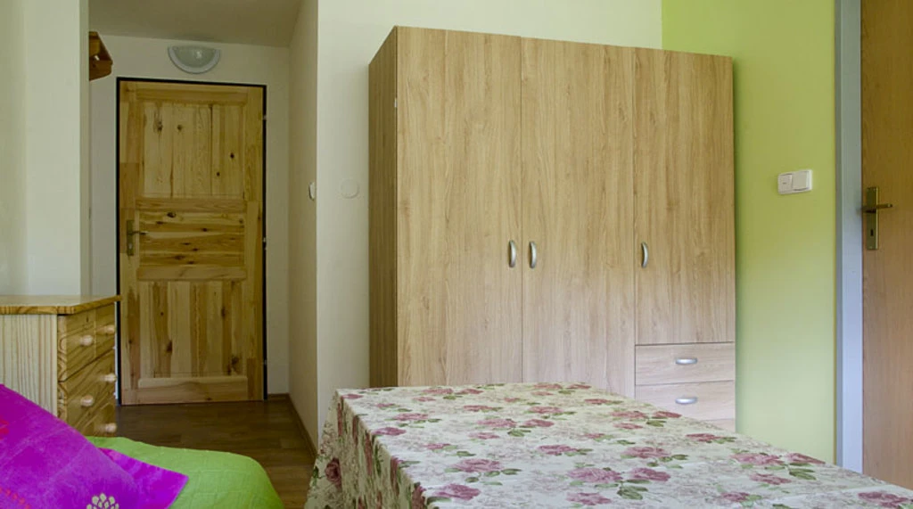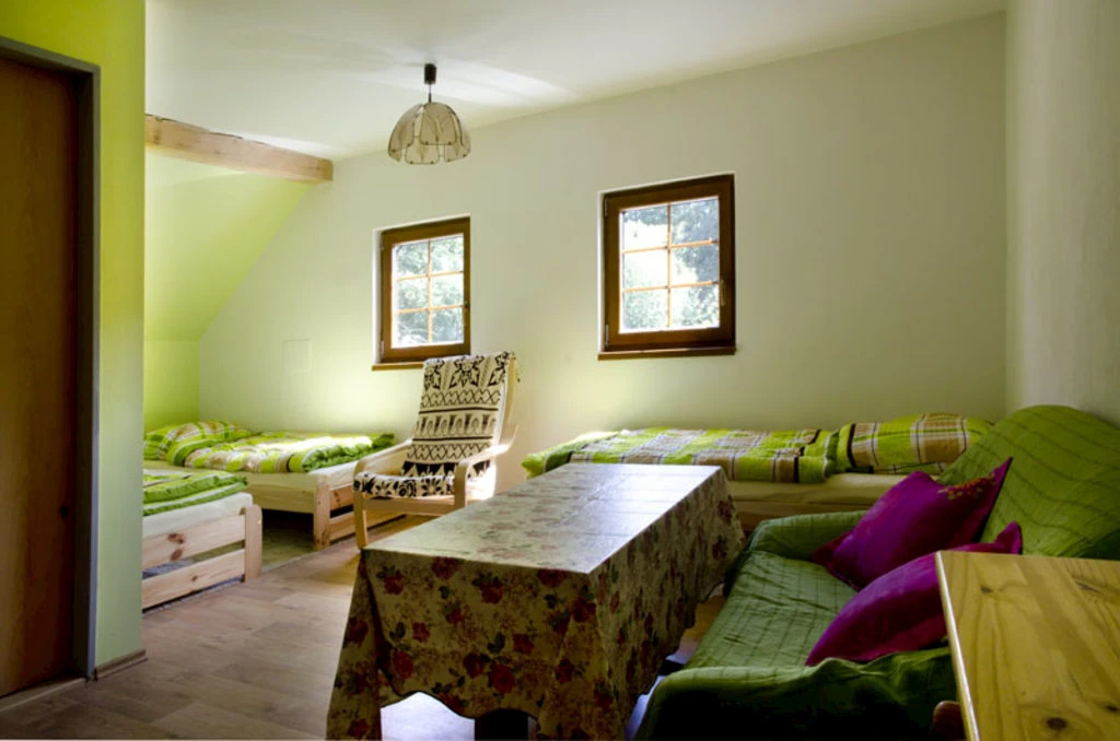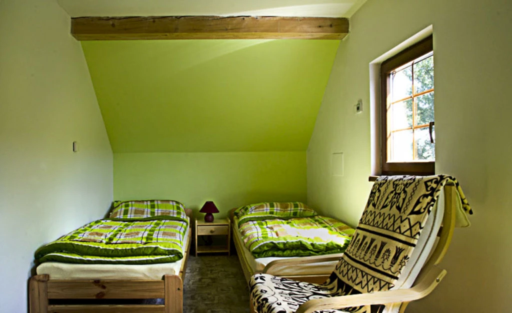- Zelený pokoj – 1 manželská postel, 1 samostatné lůžko, 1 přistýlka