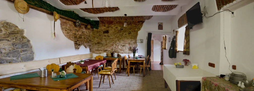V podkroví je společný kuchyňský kout s mikrovlnnou troubou, elektrickým sporákem, lednicí a jídelním sezením. Stravování probíhá v prostorné jídelně, kde jsou podávány snídaně a večeře, k dispozici je také satelitní televize.