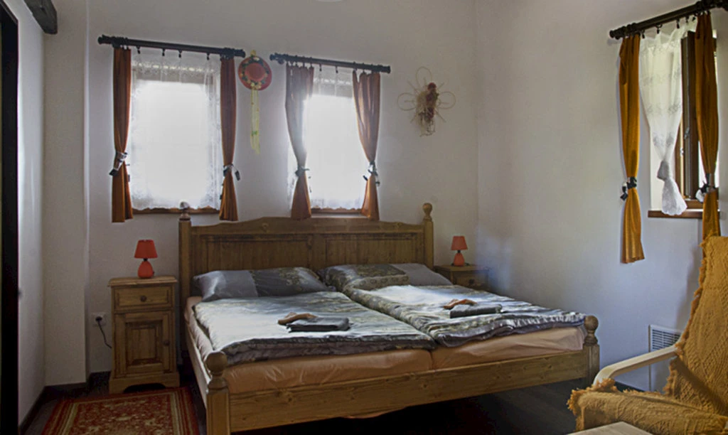 Hosté jsou ubytováni v osmi pokojích různých typů, které se nacházejí v patře a v podkroví. K dispozici jsou pokoje dvoulůžkové, vícelůžkové i rodinné. Každý pokoj má vlastní koupelnu se sprchovým koutem nebo vanou, toaletou, umyvadlem a ručníky. Výjimkou je Romantický pokoj, který je vybaven velkou rohovou hydromasážní vanou, bidetem a LED osvětlením.