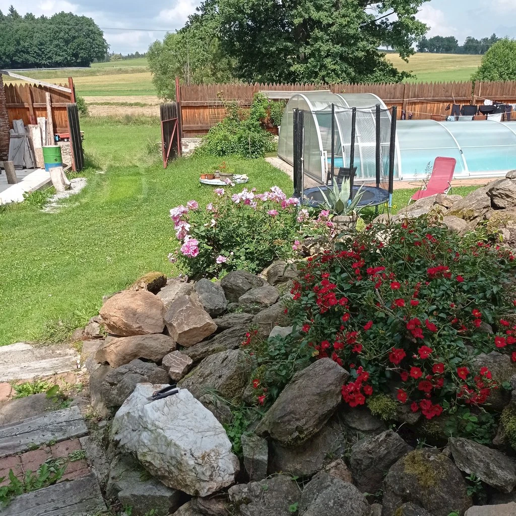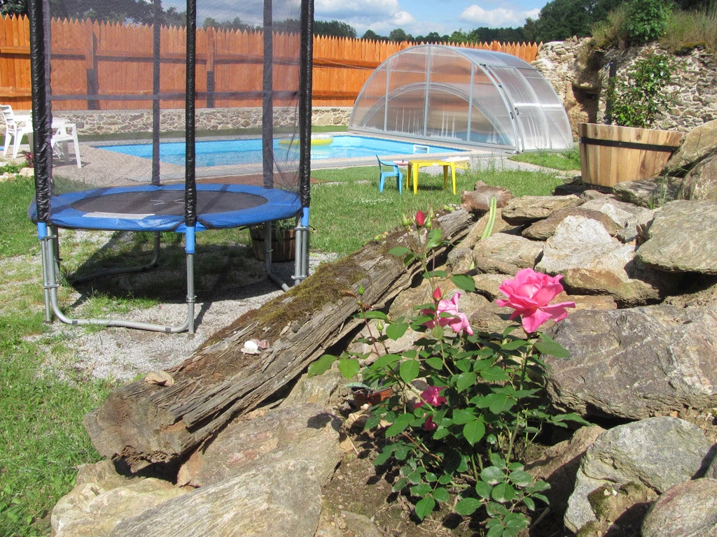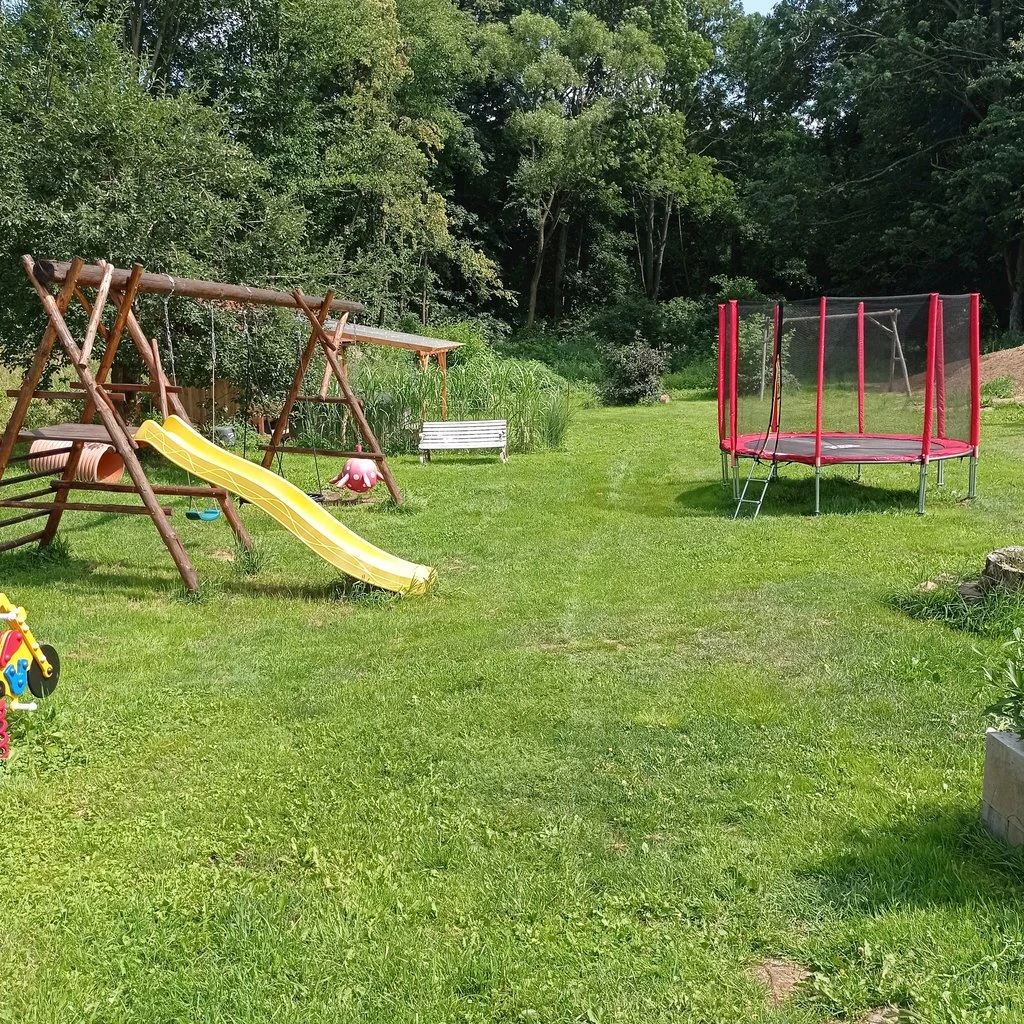 Pro rodiny s dětmi je zajištěno vybavení jako dětská postýlka a jídelní židle. Ve venkovních prostorách mohou hosté využívat pískoviště, houpačku, trampolínu a skluzavku. K relaxaci slouží venkovní bazén, zahradní houpačka a posezení u ohniště. Další posezení je možné na pavlači a před jídelnou.