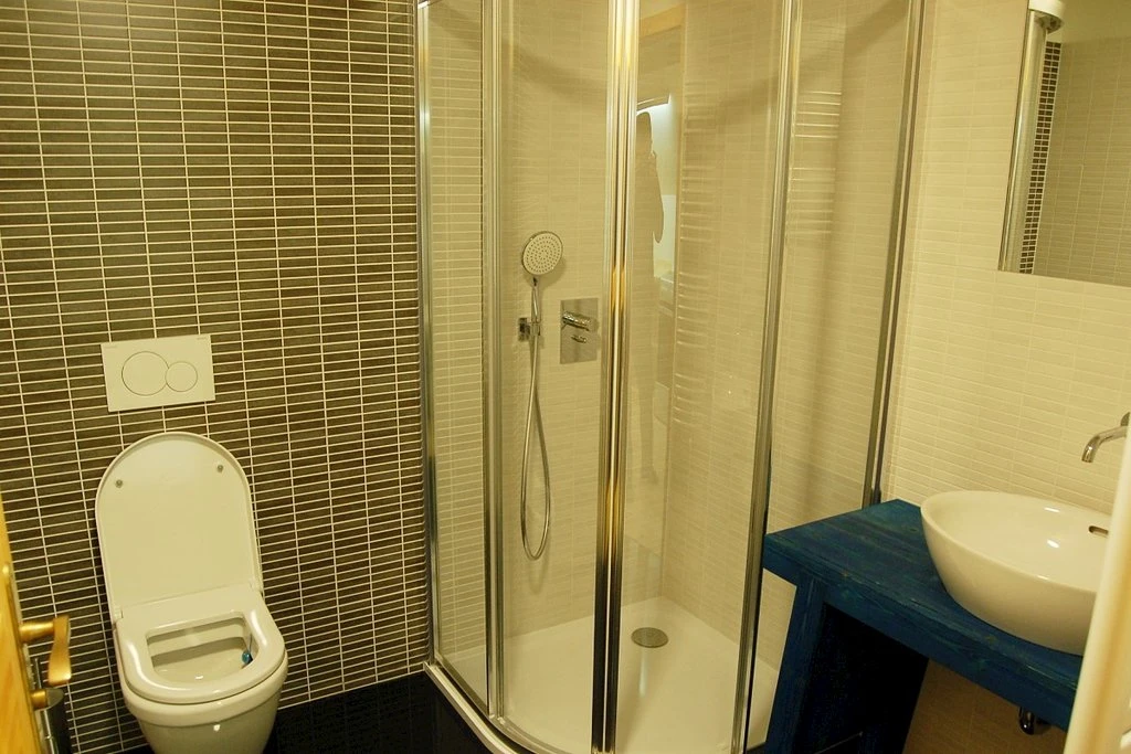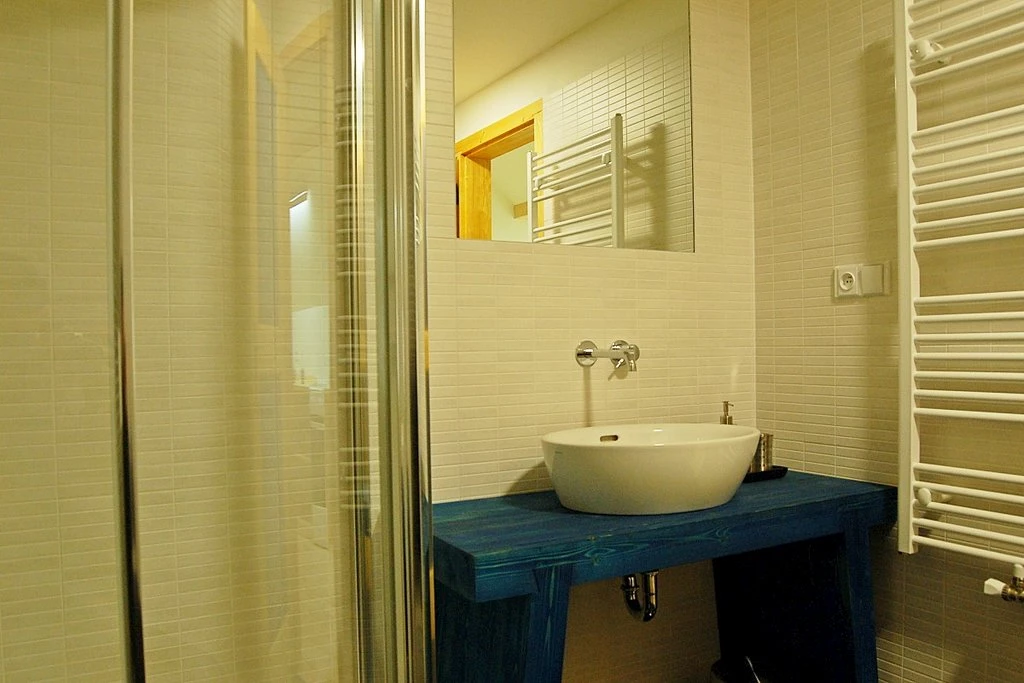 K dispozici je vlastní sociální zařízení- koupelna s umyvadlem, toaletou a sprchovým koutem.
