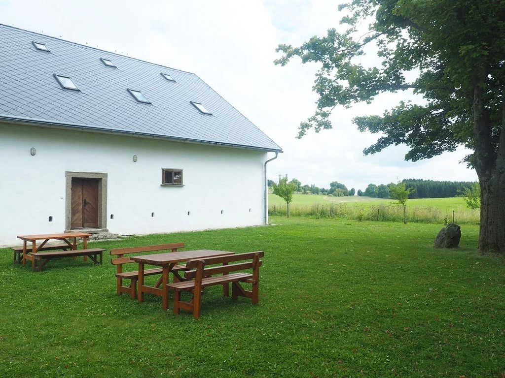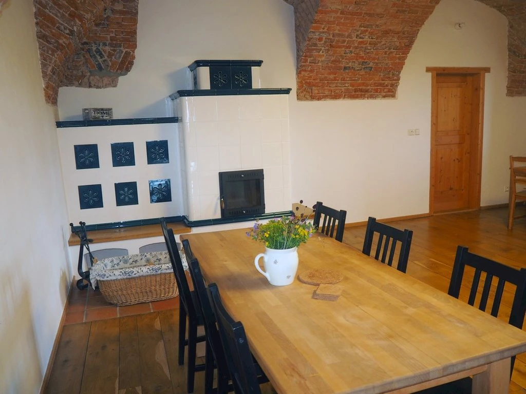 - Společenská místnost: krb / kamna, jídelní sezení