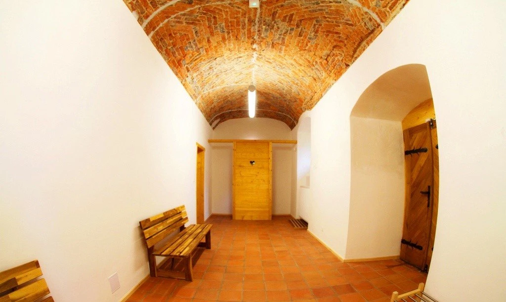 Modrý pokoj pod klenbami v přízemí budovy