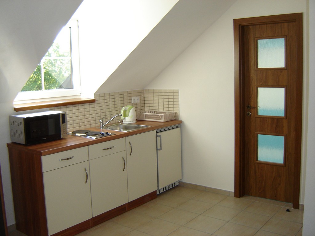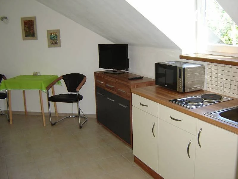 Kapacita: 2 lůžkaDispozice: 1 ložniceTyp: apartmánVybavení:vlastní koupelna se sprchovým koutem, WC a fénemkuchyňský kout s vybavením:lednicevarná deska (2 plotýnky)mikrovlnná troubarychlovarná konvicetelevizorWi-Fi internetDůležité:Při rezervaci více apartmánů je nutné provést každou rezervaci samostatně.U každé rezervace je potřeba uvést jméno a e-mail osoby nebo rodiny, která bude v apartmánu ubytována.