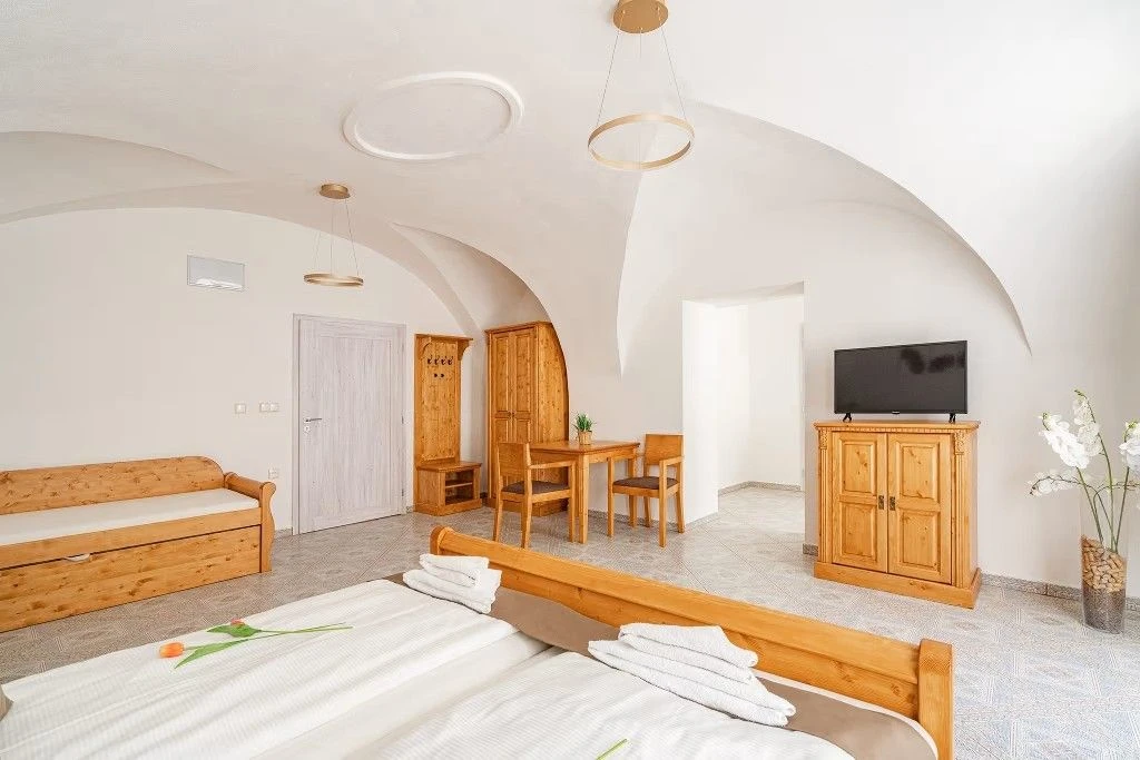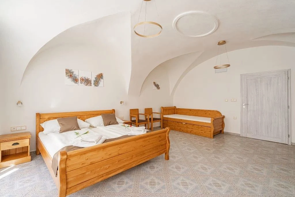Pokoj č. 10 (Třílůžkový pokoj s přistýlkou): 2 200 Kč / noc (min. 1 osoba) + 500 Kč příplatek za 3. a další osobu