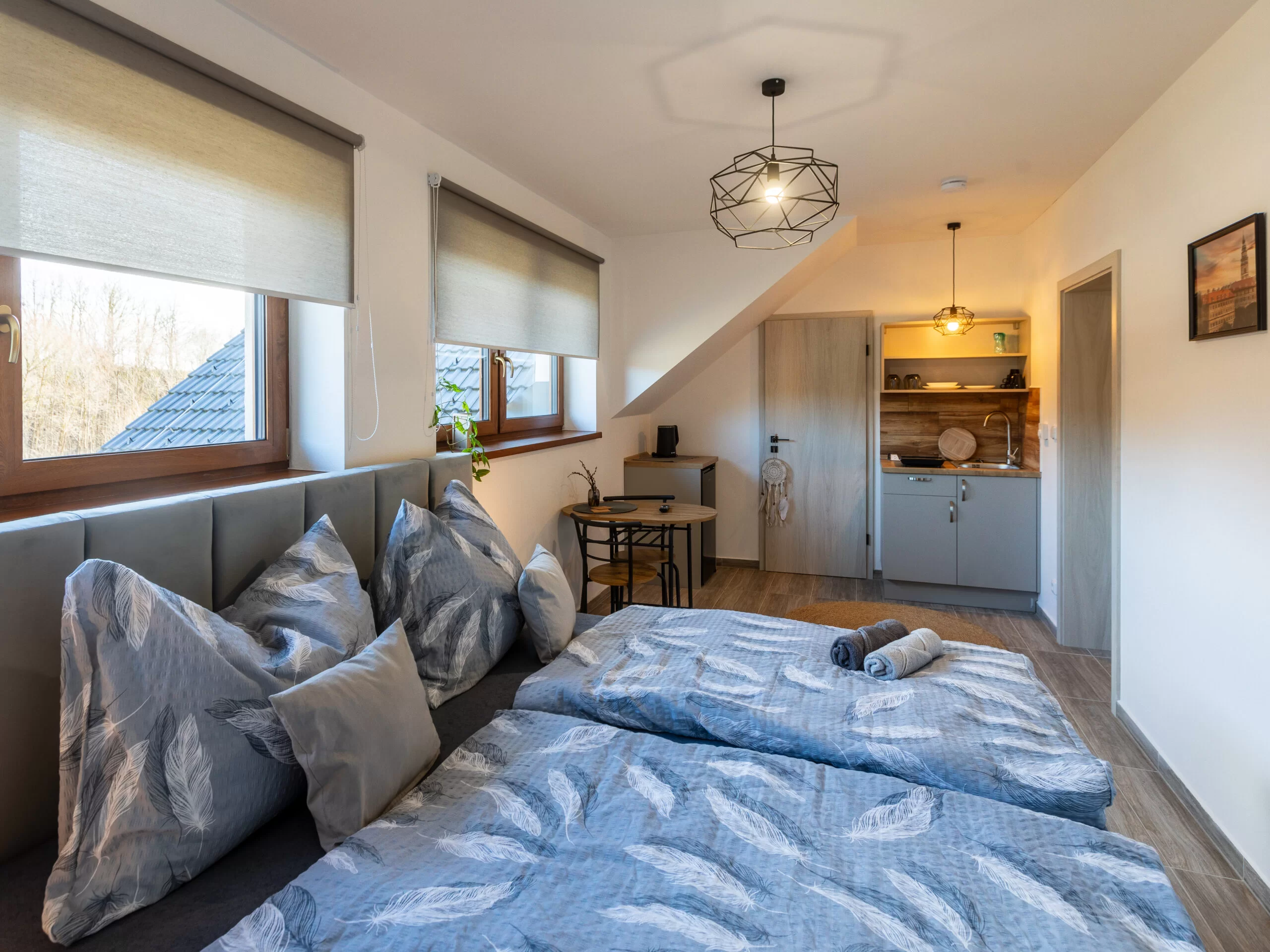 Studio Grey je podkrovní ubytovací jednotka o velikosti 20 m² určená pro maximálně 2 osoby.