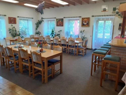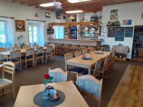 Součástí penzionu je restaurace s nekuřáckou jídelnou (cca 45 míst), bar s možností kouření (cca 30 míst) a venkovní zahrádka (cca 30 míst). Ubytování lze kombinovat se snídaní, polopenzí nebo plnou penzí.