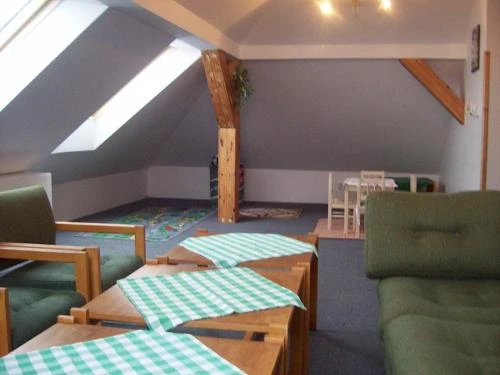 - Umístění pokojů: 5 pokojů v přízemí, 10 pokojů v podkroví (obložené dřevem)