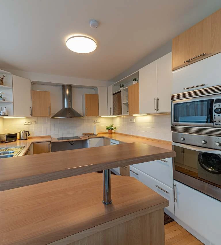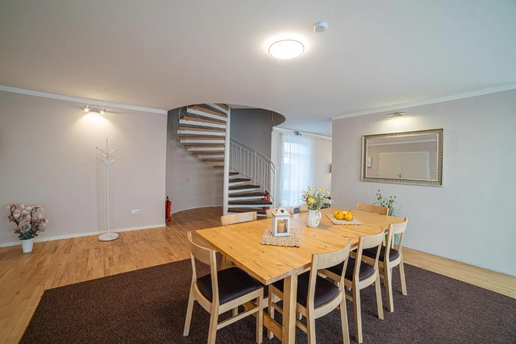 Hostům je k dispozici společenská místnost s jídelnou a plně vybavená kuchyň, ve které se nachází lednice, trouba, mikrovlnná trouba, indukční deska a základní kuchyňské nádobí.